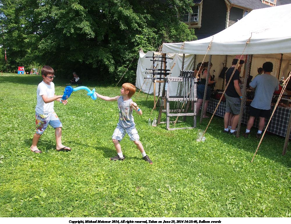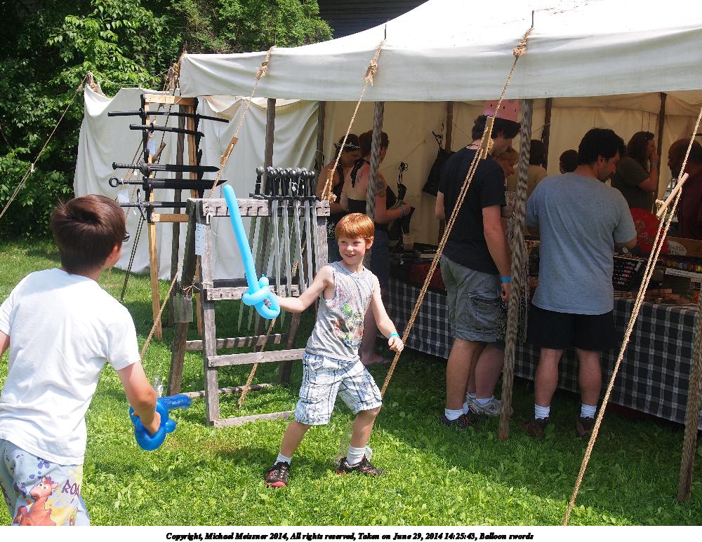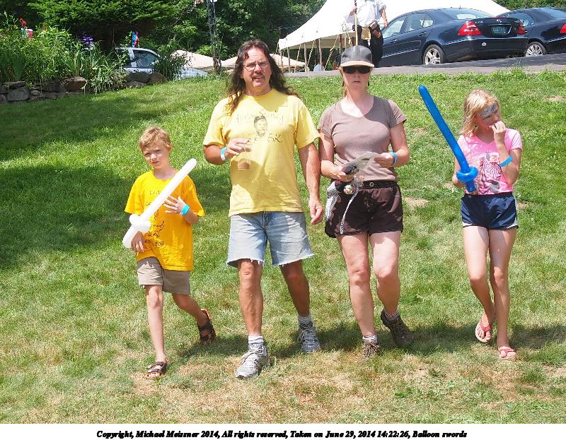 Picture #11: Balloon swords Thumb: 480x360, 73,514 bytes (72K) Small: 800x623, 187,810 bytes (184K), (html file) Large: 2400x1800, 4,180,555 bytes (4.0M), (html file) Copyright, Michael Meissner 2014, All rights reserved Olympus E-5 camera with Olympus 14-54mm f/2.8-3.5 lens f/4.5, ISO 200, 1/640 sec, 27.0mm, shutter priority, vivid color, SHQ, matrix metering, IS1 (All Direction Shake IS) 35mm equivalent focal length 54.0mm Programs used: crop, gimp, raw therapee Taken by Michael Meissner on June 29, 2014 14:22:26 Last modified on December 25, 2014 at 18:49 |