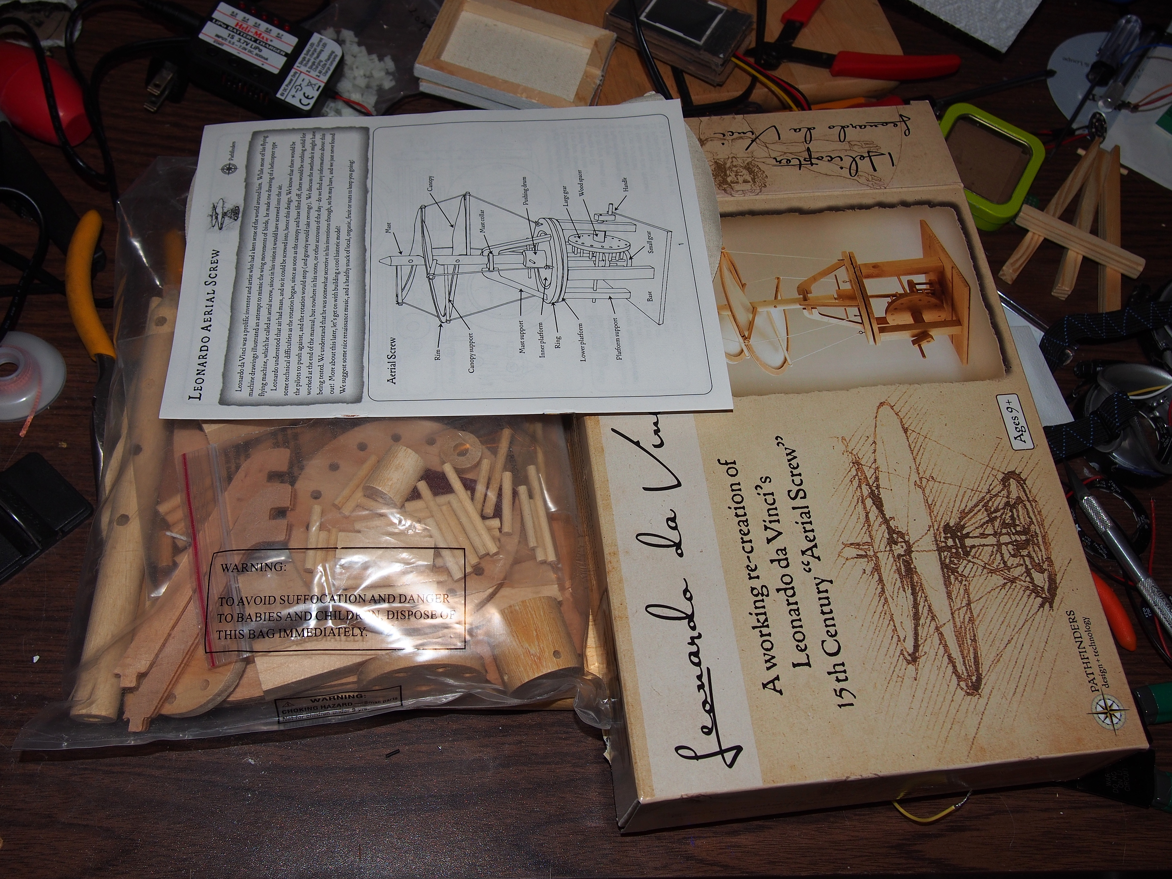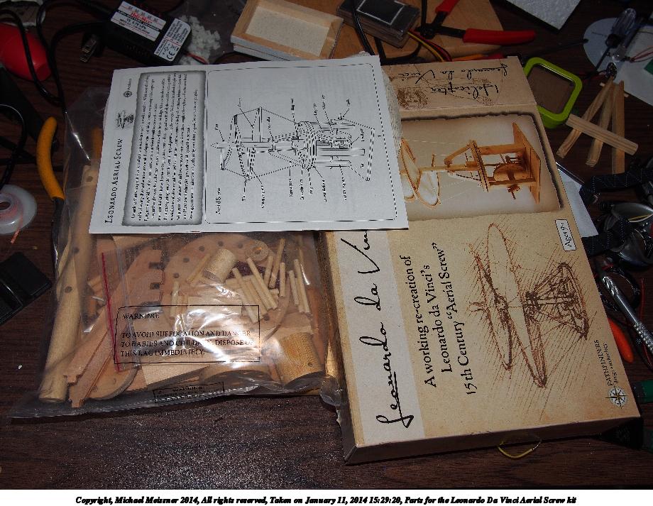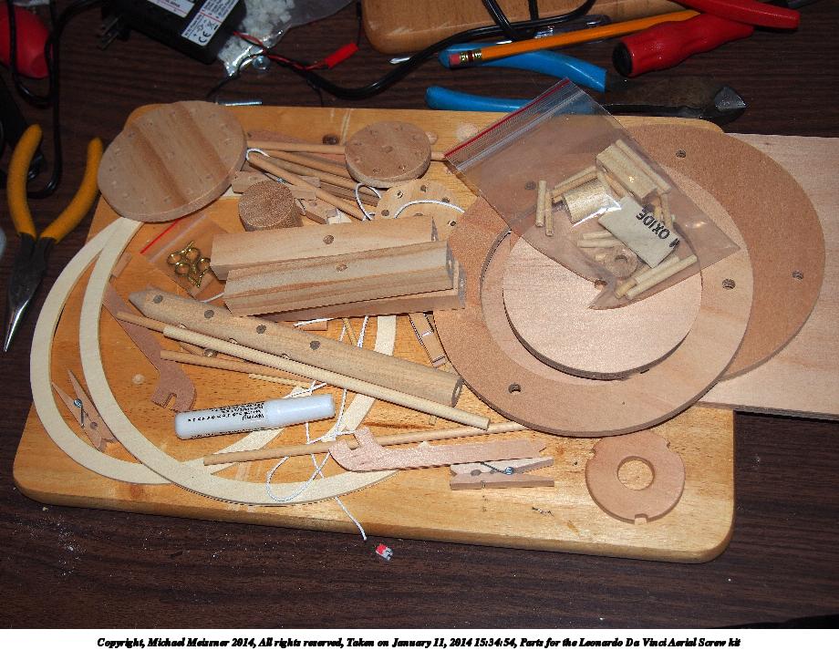 Picture #1: Parts for the Leonardo Da Vinci Aerial Screw kit Thumb: 460x345, 45,903 bytes (45K) Small: 920x713, 159,054 bytes (156K), (html file) Large: 4600x3450, 5,457,065 bytes (5.2M), (html file) Copyright, Michael Meissner 2014, All rights reserved Olympus E-PM2 camera with Olympus-m43 14-42mm-IIR f/3.5-5.6 lens f/5.6, ISO 200, flash (+0.33 flash compensation), 1/60 sec, 17.0mm, aperture priority, vivid color, matrix metering, IS1 (All Direction Shake IS), noise filter low 35mm equivalent focal length 34.0mm Programs used: crop, raw therapee Taken by Michael Meissner on January 11, 2014 15:29:20 Last modified on March 01, 2014 at 22:37 |