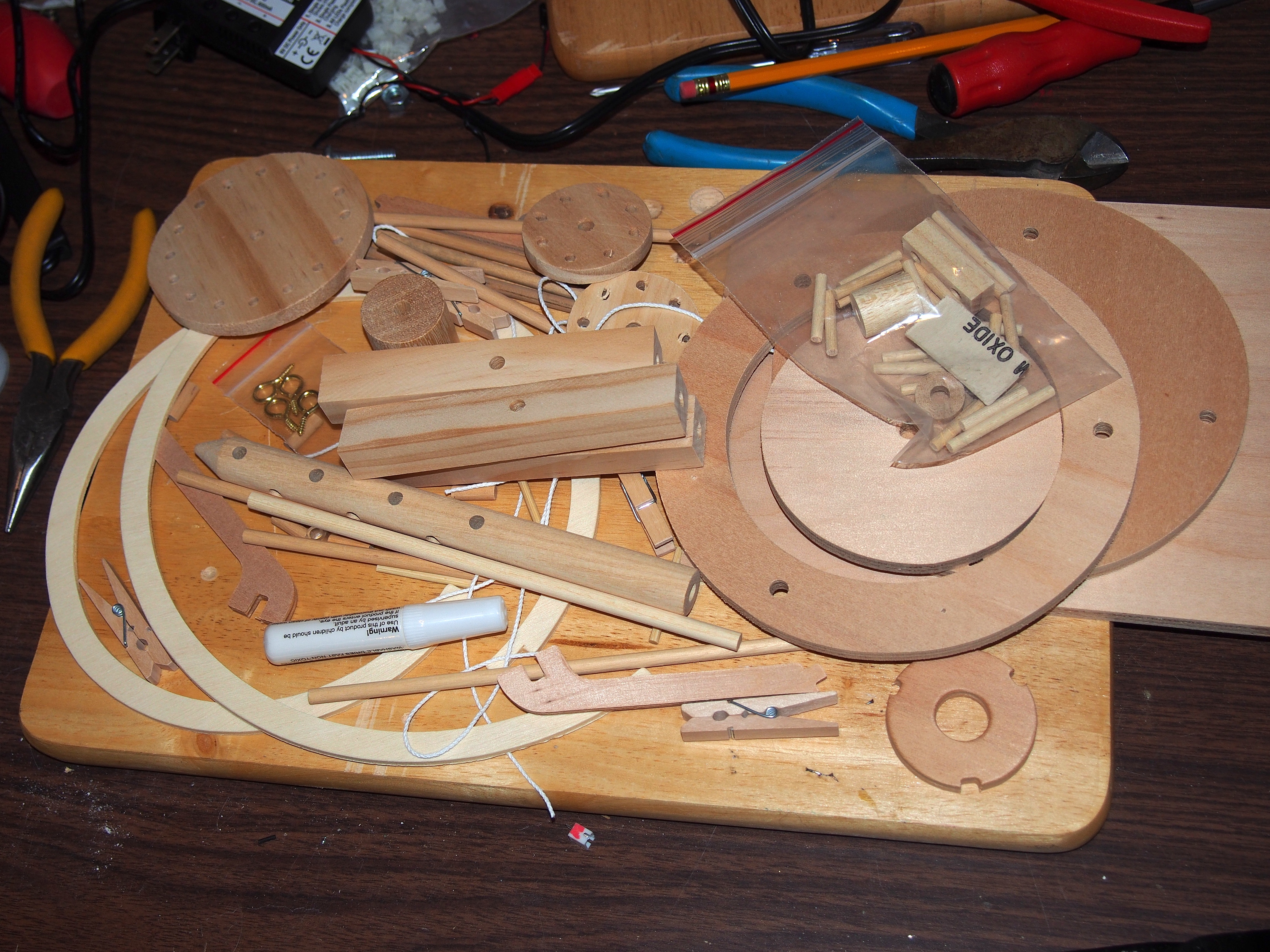 Picture #2: Parts for the Leonardo Da Vinci Aerial Screw kit #2 Thumb: 460x345, 44,436 bytes (44K) Small: 920x713, 144,040 bytes (141K), (html file) Large: 4600x3450, 5,572,928 bytes (5.3M), (html file) Copyright, Michael Meissner 2014, All rights reserved Olympus E-PM2 camera with Olympus-m43 14-42mm-IIR f/3.5-5.6 lens f/5.0, ISO 200, flash (+0.33 flash compensation), 1/60 sec, 22.0mm, aperture priority, vivid color, matrix metering, IS1 (All Direction Shake IS), noise filter low 35mm equivalent focal length 44.0mm Programs used: crop, raw therapee Taken by Michael Meissner on January 11, 2014 15:34:54 Last modified on March 01, 2014 at 22:37 |