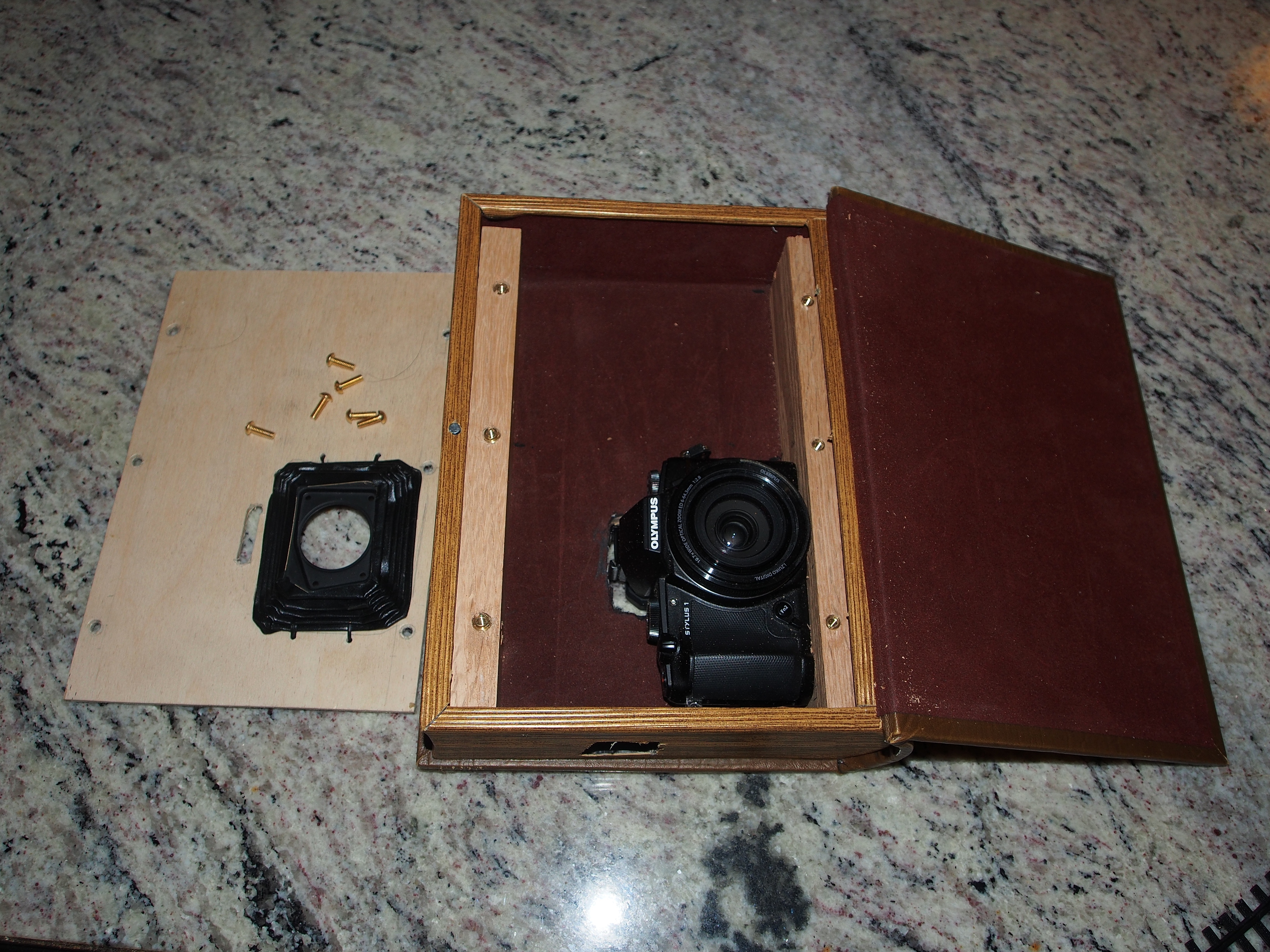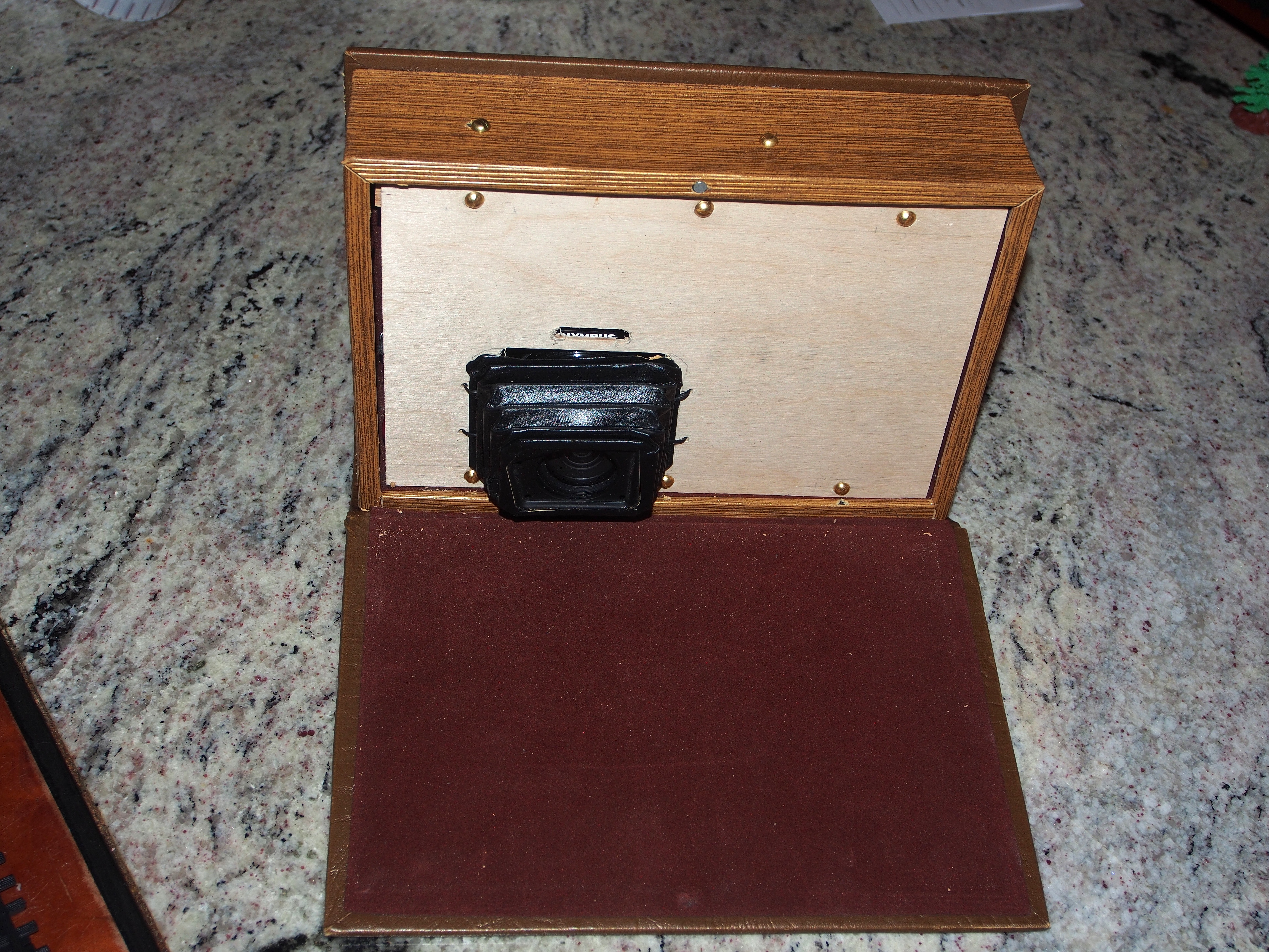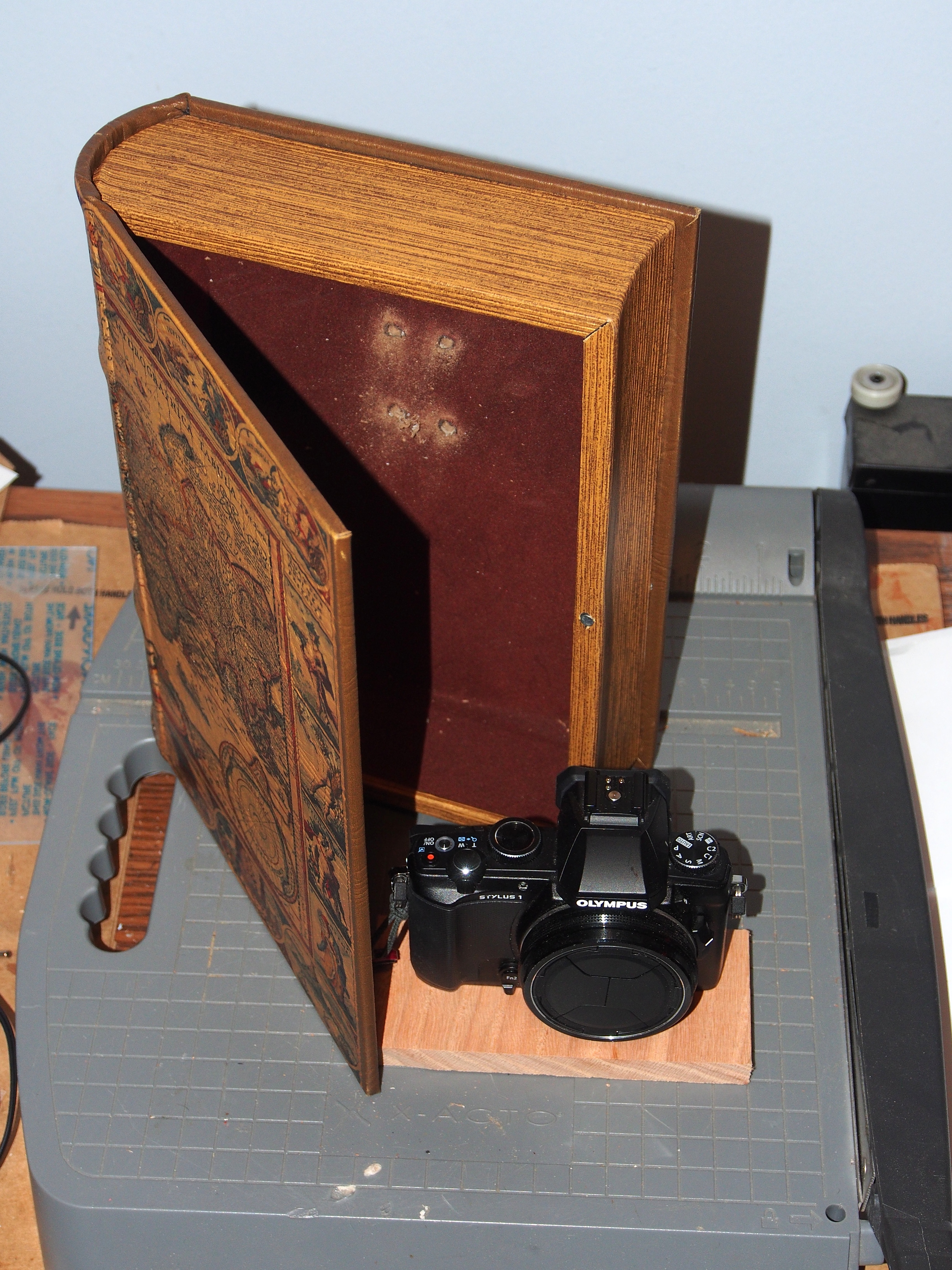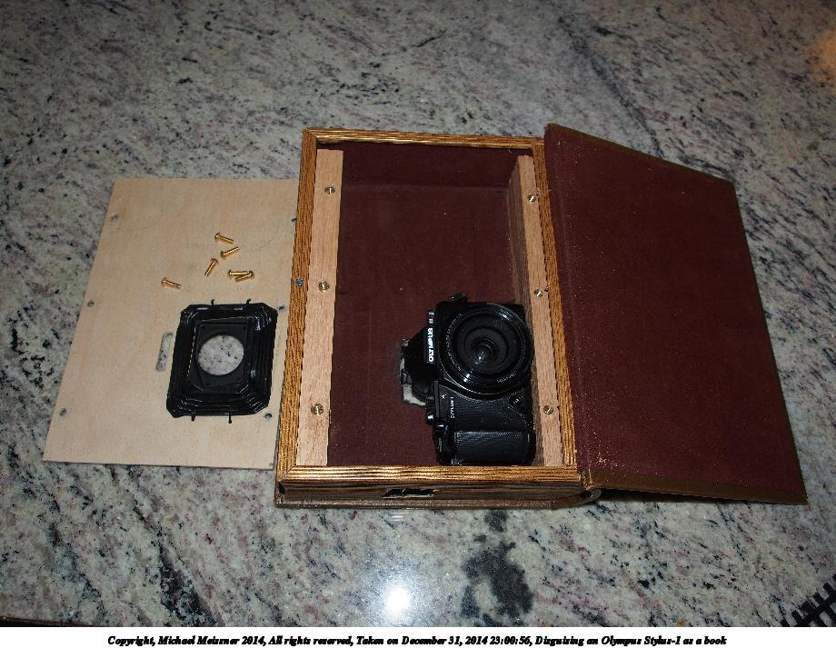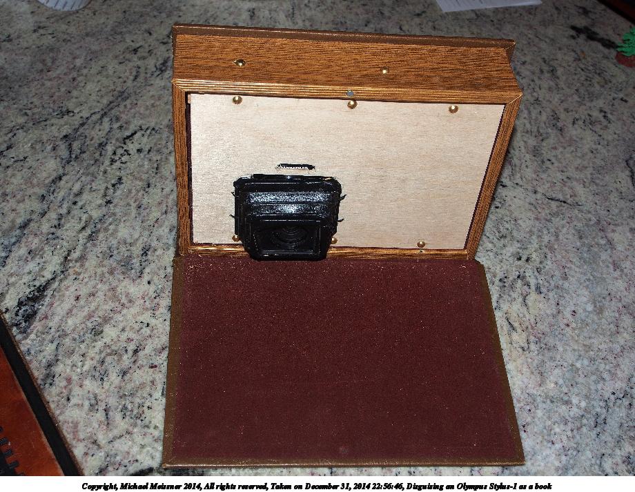 Picture #4: Disguising an Olympus Stylus-1 as a book Thumb: 345x460, 54,396 bytes (54K) Small: 690x943, 181,671 bytes (178K), (html file) Large: 3450x4600, 6,202,753 bytes (5.9M), (html file) Copyright, Michael Meissner 2014, All rights reserved Olympus E-M5-I camera with Olympus-m43 12-50mm f/3.5-6.3 lens f/5.2, ISO 200, flash (+0.33 flash compensation), 1/60 sec, 26.0mm, auto mode, vivid color, matrix metering, IS1 (All Direction Shake IS), noise filter low 35mm equivalent focal length 52.0mm Programs used: crop, raw therapee, rotate left Taken by Michael Meissner on December 31, 2014 22:55:35 Last modified on January 01, 2015 at 01:52 |