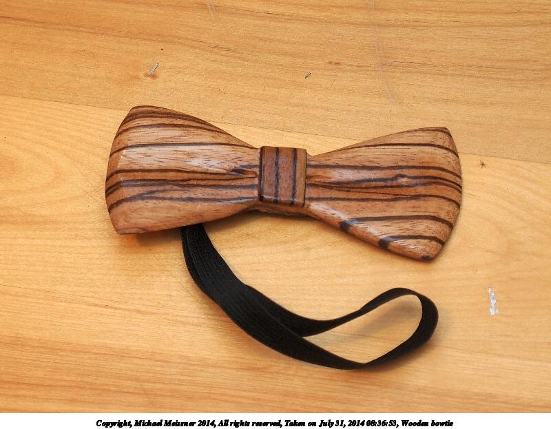 Picture #1: Wooden bowtie Thumb: 480x360, 43,471 bytes (43K) Small: 800x623, 93,537 bytes (92K), (html file) Large: 2400x1800, 2,629,609 bytes (2.5M), (html file) Copyright, Michael Meissner 2014, All rights reserved Olympus E-5 camera with Olympus 14-54mm f/2.8-3.5 lens f/3.3, ISO 200, Metz 48 flash (+0.3 flash compensation), 1/60 sec, 40.0mm, auto mode, vivid color, matrix metering, IS1 (All Direction Shake IS) 35mm equivalent focal length 80.0mm Extra equipment used: Metz 48 flash Programs used: crop, gimp, raw therapee Taken by Michael Meissner on July 31, 2014 08:36:53 Last modified on July 31, 2014 at 09:28 |
