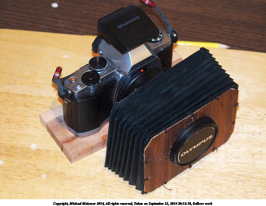 Picture #2: Bellows work Thumb: 450x338, 41,183 bytes (41K) Small: 900x698, 116,949 bytes (115K), (html file) Large: 3600x2700, 3,283,844 bytes (3.1M), (html file) Copyright, Michael Meissner 2014, All rights reserved Olympus Stylus-1 camera f/2.8, ISO 400, flash (+0.33 flash compensation), 1/60 sec, 19.6mm, auto mode, vivid color, SHQ, matrix metering, IS Auto, noise reduction auto, noise filter low 35mm equivalent focal length 92.0mm Programs used: crop, raw therapee, rotate right Taken by Michael Meissner on September 21, 2014 20:32:10 Last modified on September 21, 2014 at 21:53 |