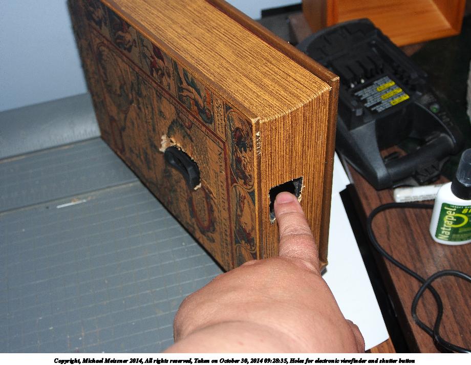 Picture #2: Holes for electronic viewfinder and shutter button Thumb: 460x345, 44,250 bytes (44K) Small: 920x713, 130,419 bytes (128K), (html file) Large: 4600x3450, 4,993,146 bytes (4.8M), (html file) Copyright, Michael Meissner 2014, All rights reserved Olympus E-M5-I camera with Olympus-m43 12-50mm f/3.5-6.3 lens f/5.2, ISO 320, flash (+0.33 flash compensation), 1/60 sec, 26.0mm, auto mode, vivid color, matrix metering, IS1 (All Direction Shake IS), noise filter low 35mm equivalent focal length 52.0mm Programs used: crop, raw therapee Taken by Michael Meissner on October 30, 2014 09:28:25 Last modified on November 10, 2014 at 09:27 |