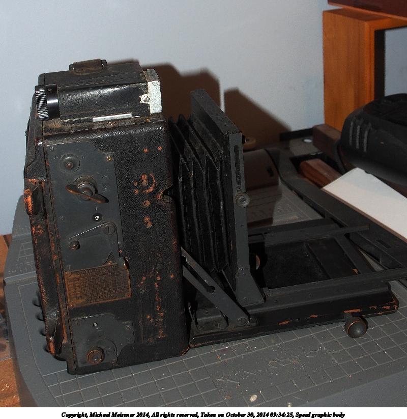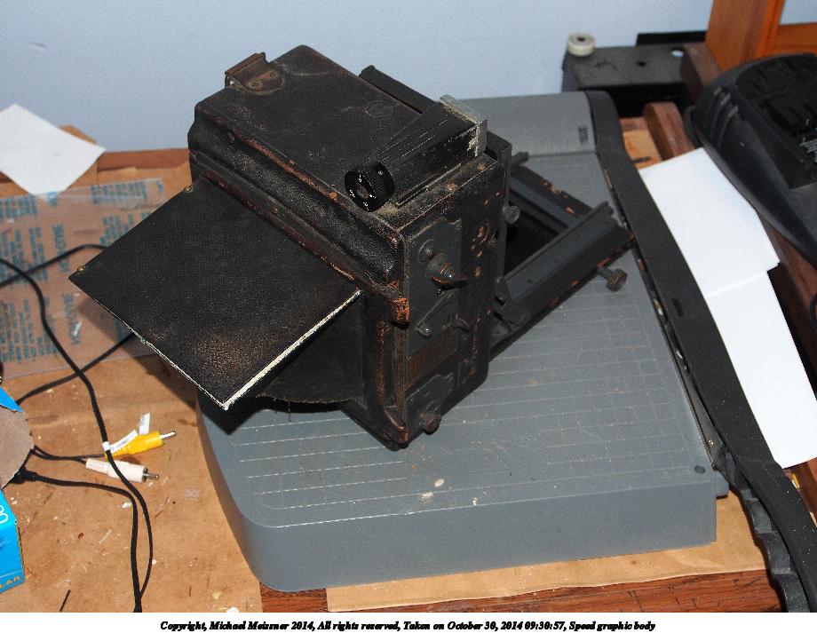 Picture #3: Speed graphic body #3 Thumb: 480x480, 47,143 bytes (47K) Small: 800x823, 102,647 bytes (101K), (html file) Large: 2400x2400, 2,800,719 bytes (2.7M), (html file) Copyright, Michael Meissner 2014, All rights reserved Olympus E-M5-I camera with Olympus-m43 12-50mm f/3.5-6.3 lens f/4.0, ISO 200, flash (+0.33 flash compensation), 1/60 sec, 15.0mm, auto mode, vivid color, matrix metering, IS1 (All Direction Shake IS), noise filter low 35mm equivalent focal length 30.0mm Programs used: crop, gimp, raw therapee, rotate left Taken by Michael Meissner on October 30, 2014 09:34:25 Last modified on November 10, 2014 at 09:29 |