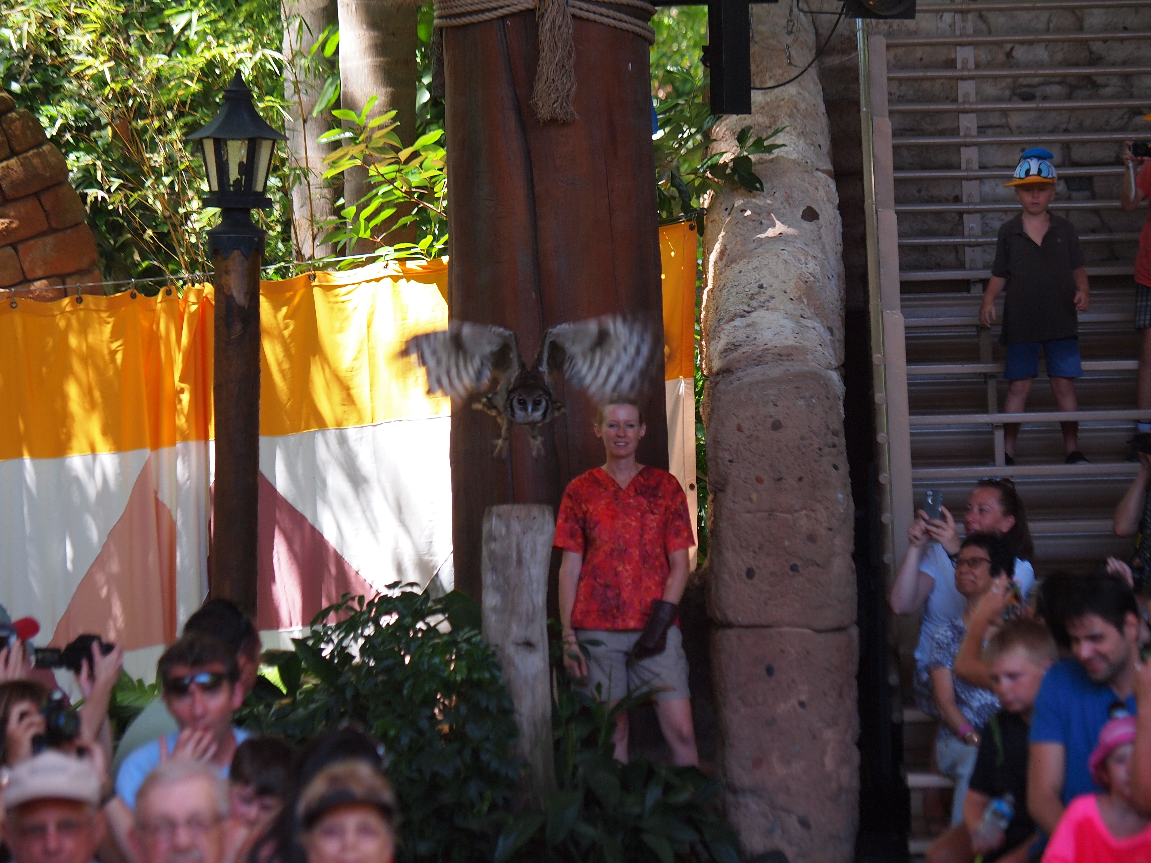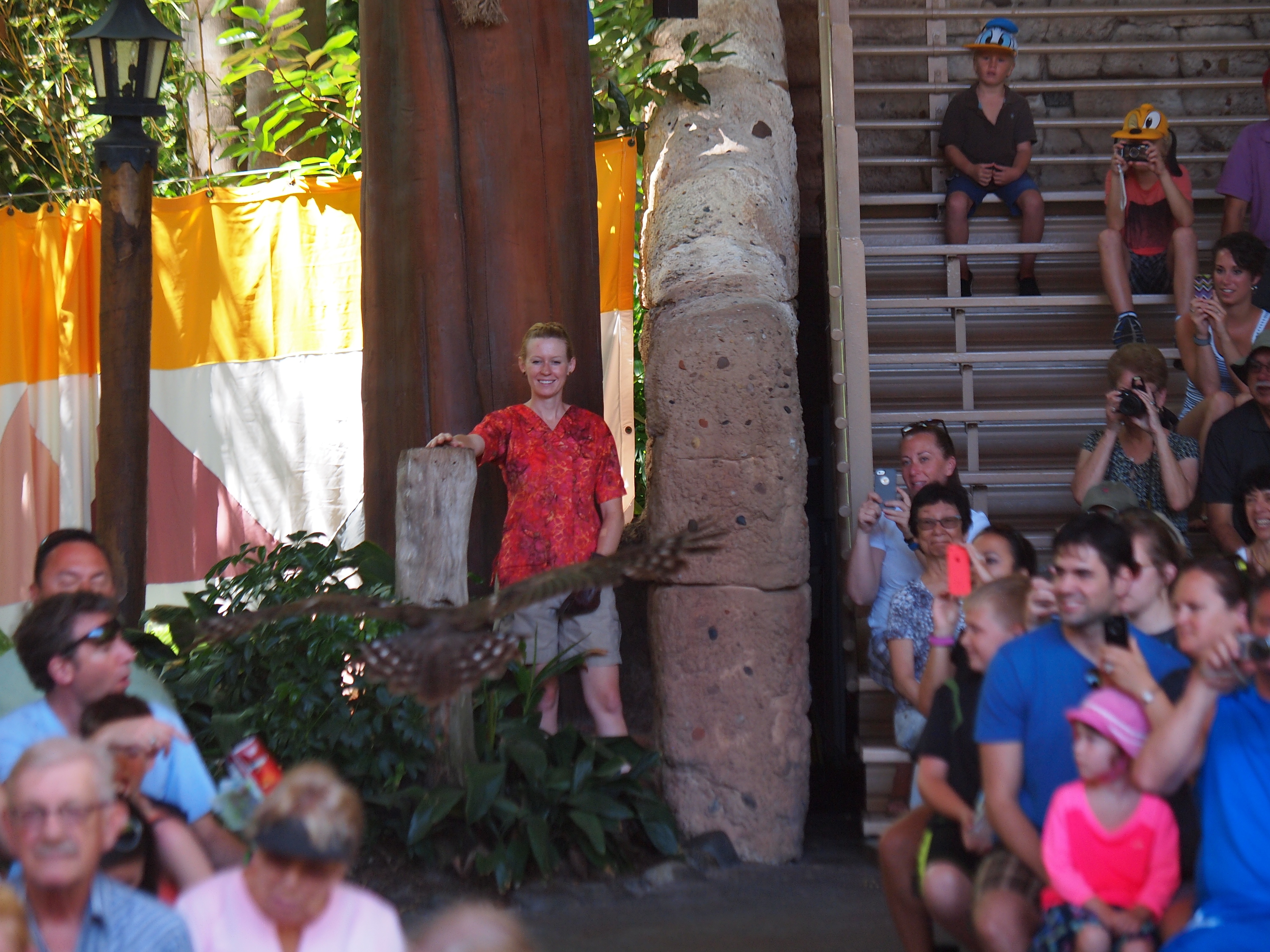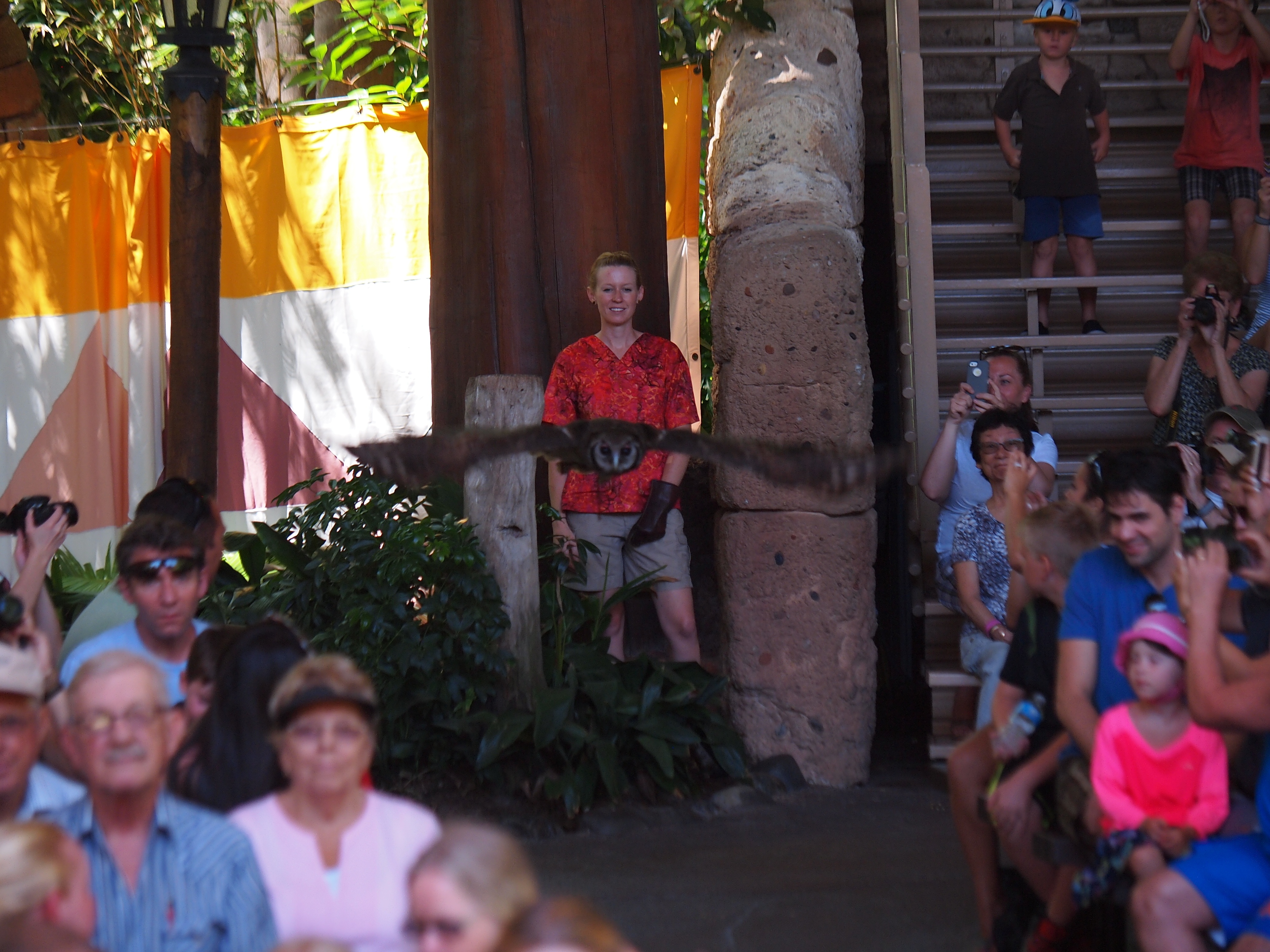 Picture #98: Flights of Wonder bird show #9 Small: 750x1023, 186,788 bytes (183K), (html file) Large: 3000x4000, 4,165,870 bytes (4.0M), (html file) Copyright, Michael Meissner 2014, All rights reserved Olympus E-5 camera with Olympus 50-200mm lens f/4.0, ISO 200, 1/250 sec, 50.0mm, auto mode, vivid color, matrix metering, IS1 (All Direction Shake IS) 35mm equivalent focal length 100.0mm Programs used: crop, raw therapee, rotate left Taken by Michael Meissner on May 08, 2014 11:32:37 Last modified on November 22, 2014 at 14:28 |