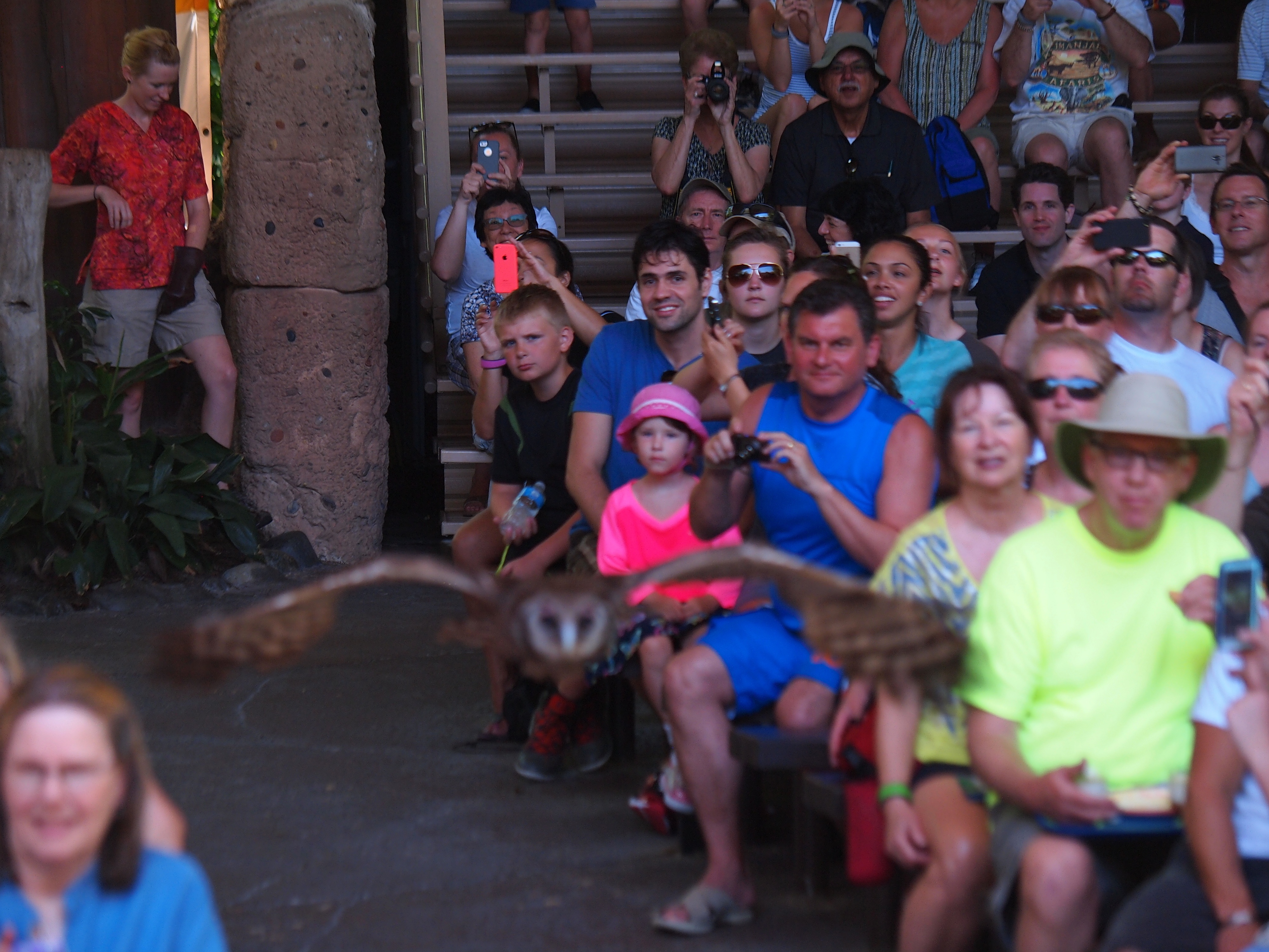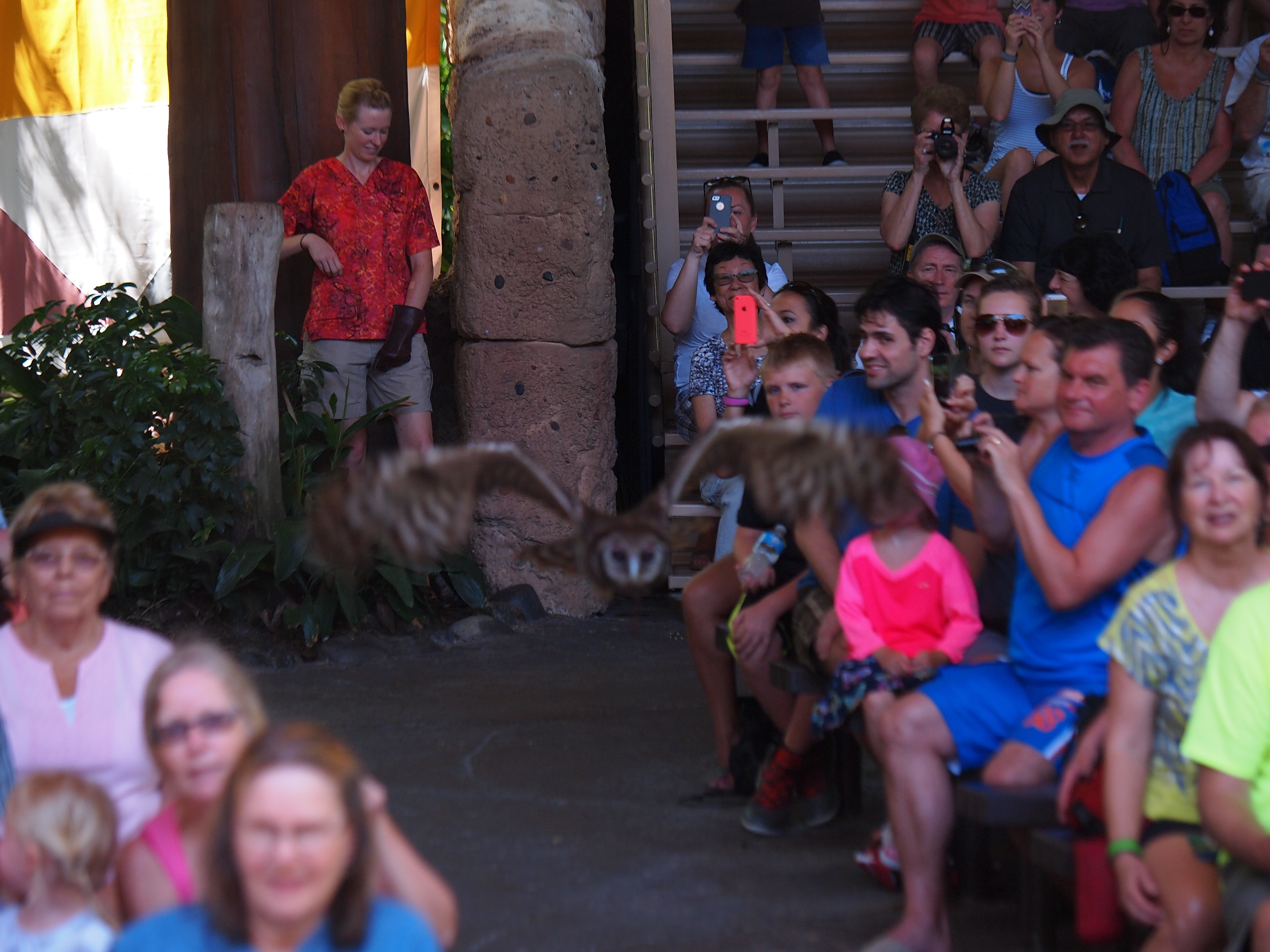 Picture #59: Flights of Wonder bird show #38 Small: 800x556, 113,519 bytes (111K), (html file) Large: 2400x1600, 2,462,448 bytes (2.3M), (html file) Copyright, Michael Meissner 2014, All rights reserved Olympus E-5 camera with Olympus 50-200mm lens f/3.2, ISO 200, 1/320 sec, 101.0mm, auto mode, vivid color, matrix metering, IS1 (All Direction Shake IS) 35mm equivalent focal length 202.0mm Programs used: crop, gimp, raw therapee Taken by Michael Meissner on May 08, 2014 11:51:45 Last modified on November 22, 2014 at 14:41 |
