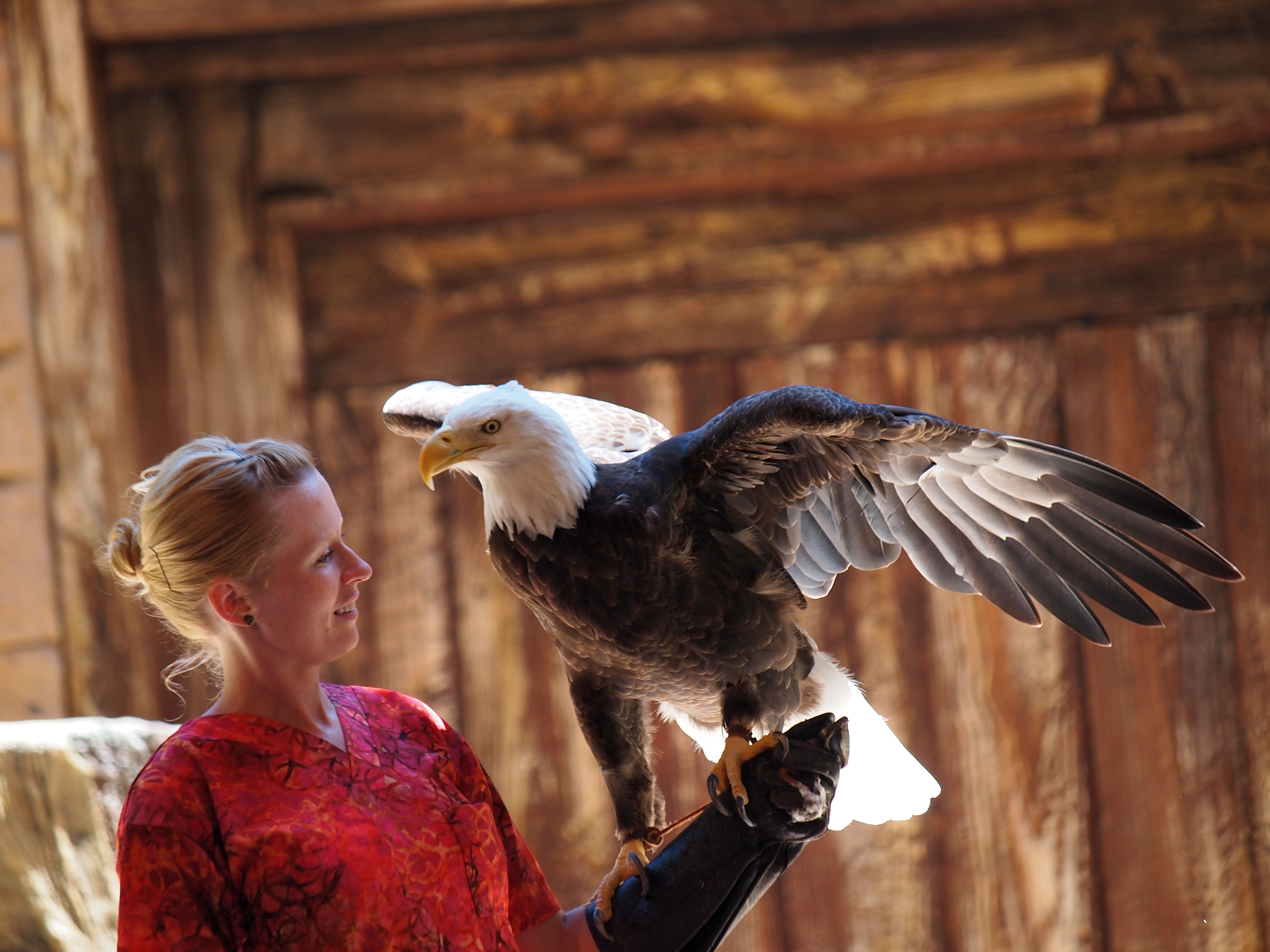 Picture #95: Flights of Wonder bird show #12 Small: 750x1023, 150,981 bytes (148K), (html file) Large: 3000x4000, 2,956,564 bytes (2.8M), (html file) Copyright, Michael Meissner 2014, All rights reserved Olympus E-5 camera with Olympus 50-200mm lens f/4.0, ISO 200, 1/250 sec, 50.0mm, auto mode, vivid color, matrix metering, IS1 (All Direction Shake IS) 35mm equivalent focal length 100.0mm Programs used: crop, raw therapee, rotate left Taken by Michael Meissner on May 08, 2014 11:32:39 Last modified on November 22, 2014 at 14:28 |