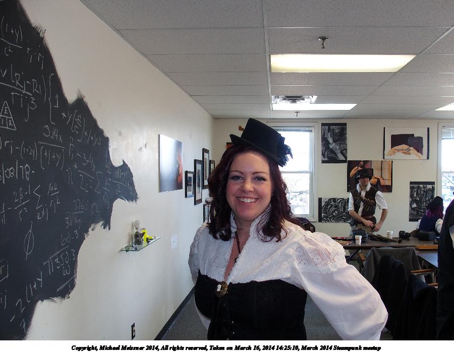 Picture #15: March 2014 Steampunk meetup #11 900x698, 91,450 bytes (90K), (html file) Copyright, Michael Meissner 2014, All rights reserved Olympus Stylus-1 camera f/2.8, ISO 200, flash, 1/100 sec, 16.1mm, auto mode, vivid color, SHQ, matrix metering, IS Auto, noise reduction auto, noise filter low 35mm equivalent focal length 76.0mm Programs used: crop, raw therapee Taken by Michael Meissner on March 16, 2014 15:18:42 Last modified on March 30, 2014 at 16:25 |