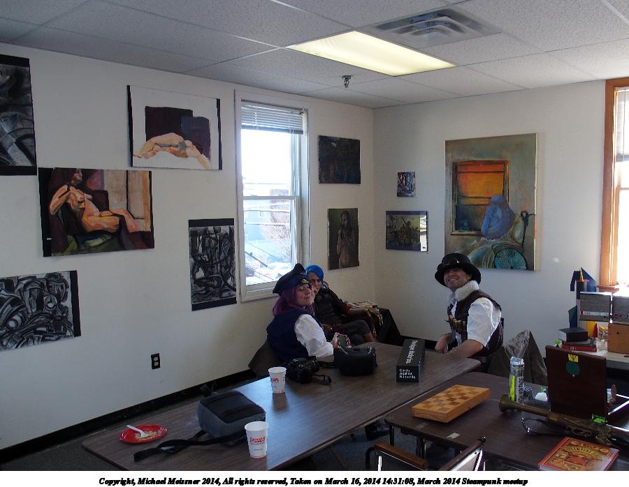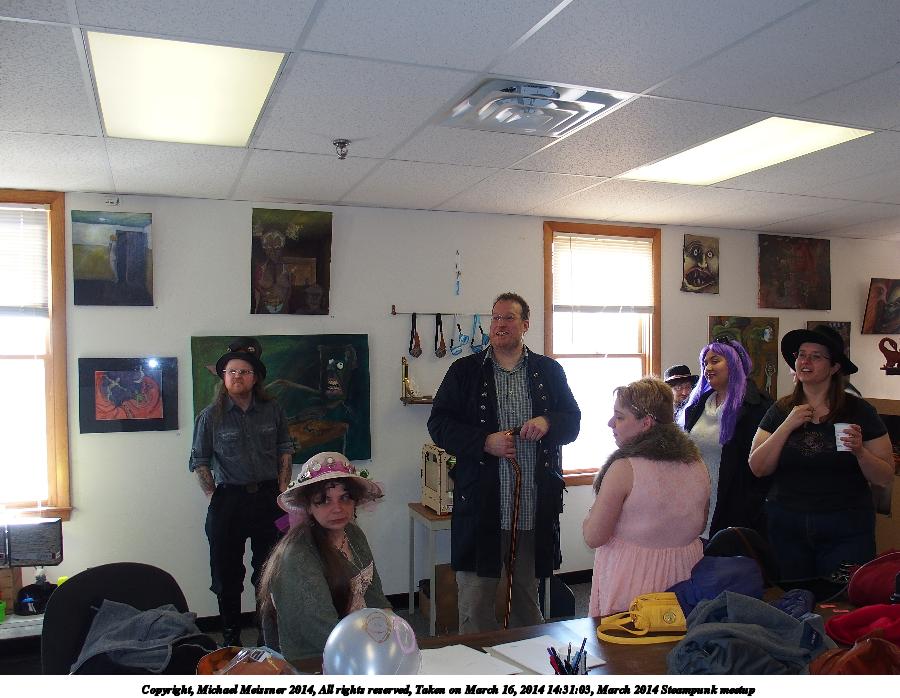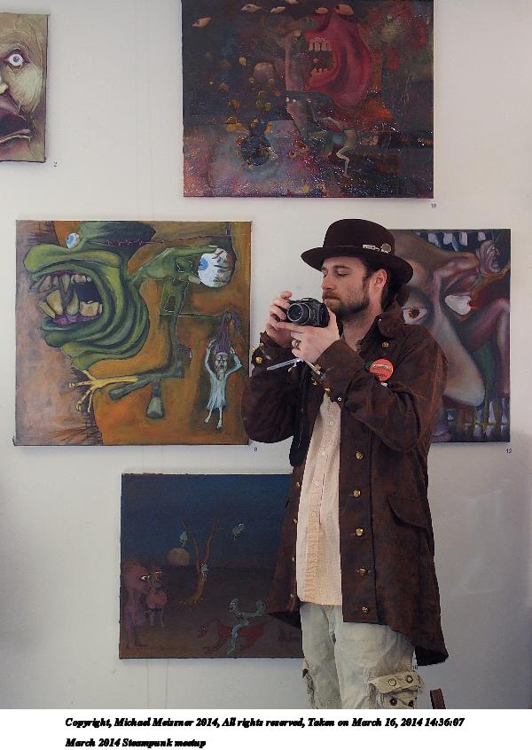 Picture #26: March 2014 Steampunk meetup #7 900x698, 103,846 bytes (102K), (html file) Copyright, Michael Meissner 2014, All rights reserved Olympus Stylus-1 camera f/2.8, ISO 100, flash, 1/80 sec, 6.0mm, auto mode, vivid color, SHQ, matrix metering, IS Auto, noise reduction auto, noise filter low 35mm equivalent focal length 28.0mm Programs used: crop, raw therapee Taken by Michael Meissner on March 16, 2014 14:31:08 Last modified on March 30, 2014 at 16:20 |