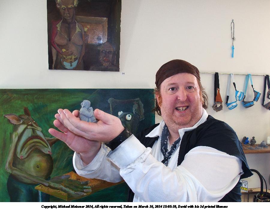 Picture #21: David with his 3d printed likeness #2 900x698, 102,358 bytes (100K), (html file) Copyright, Michael Meissner 2014, All rights reserved Olympus Stylus-1 camera f/2.8, ISO 160, flash, 1/60 sec, 6.0mm, auto mode, vivid color, SHQ, matrix metering, IS Auto, noise reduction auto, noise filter low 35mm equivalent focal length 28.0mm Programs used: crop, raw therapee Taken by Michael Meissner on March 16, 2014 15:05:10 Last modified on March 30, 2014 at 16:23 |
