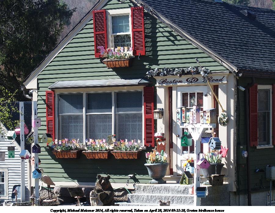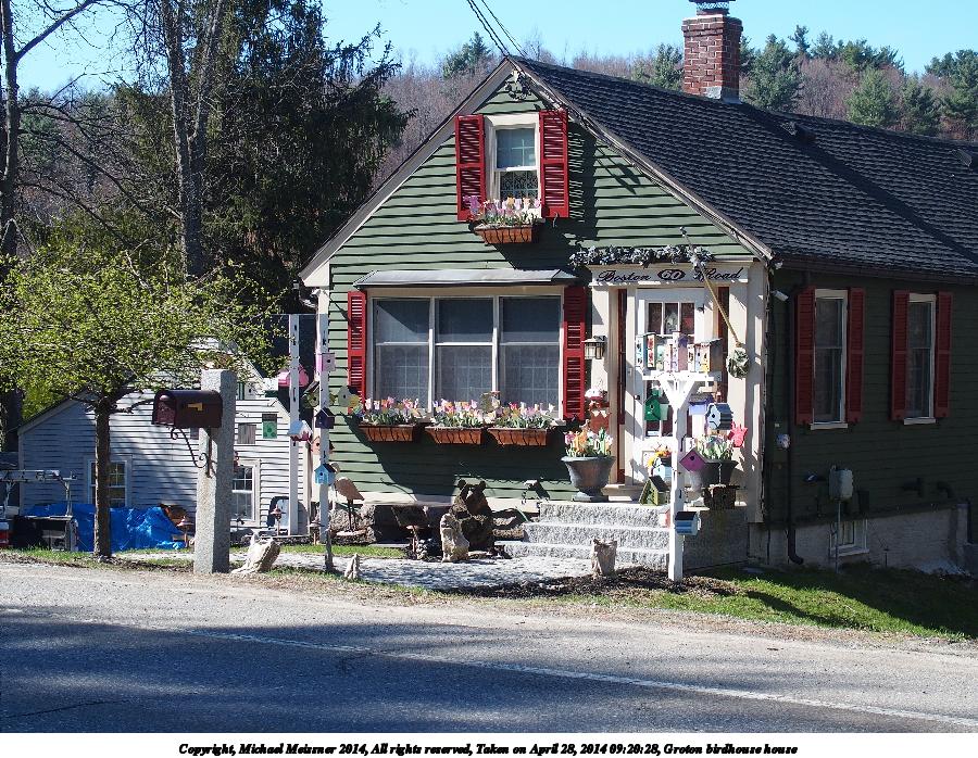 Picture #4: Groton birdhouse house #2 900x698, 139,001 bytes (136K), (html file) Copyright, Michael Meissner 2014, All rights reserved Olympus Stylus-1 camera f/3.5, ISO 100, flash, 1/800 sec, 64.3mm, auto mode, vivid color, SHQ, matrix metering, IS Auto, noise reduction auto, noise filter low 35mm equivalent focal length 300.0mm Programs used: crop, raw therapee Taken by Michael Meissner on April 28, 2014 09:20:48 Last modified on May 05, 2014 at 22:11 |