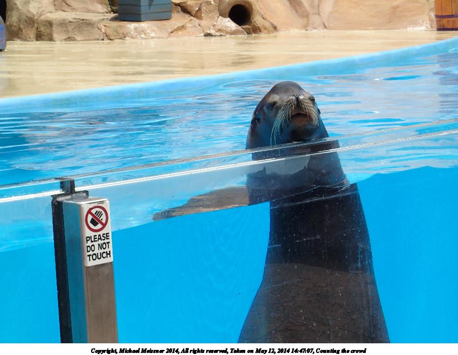 Picture #86: Sea lion show #8 900x698, 145,527 bytes (143K), (html file) Copyright, Michael Meissner 2014, All rights reserved Olympus TG-2 camera f/3.2, ISO 200, 1/1600 sec, 5.1mm, sport mode, HQ, matrix metering, image stabilization (mode 2), noise filter n/a 35mm equivalent focal length 28.0mm Programs used: crop, raw therapee Taken by Michael Meissner on May 12, 2014 14:55:26 Last modified on November 02, 2014 at 16:06 |