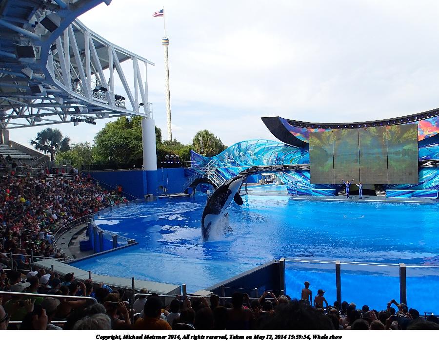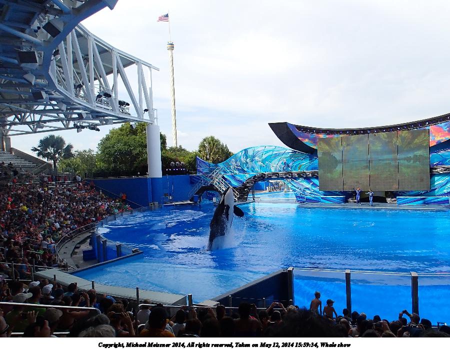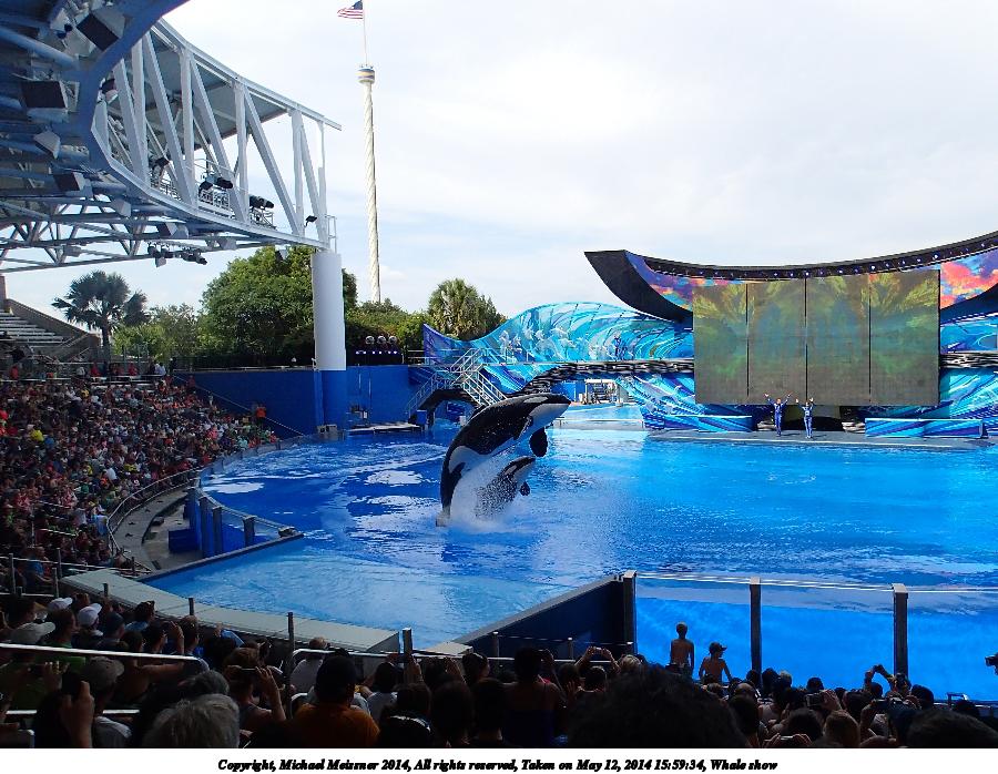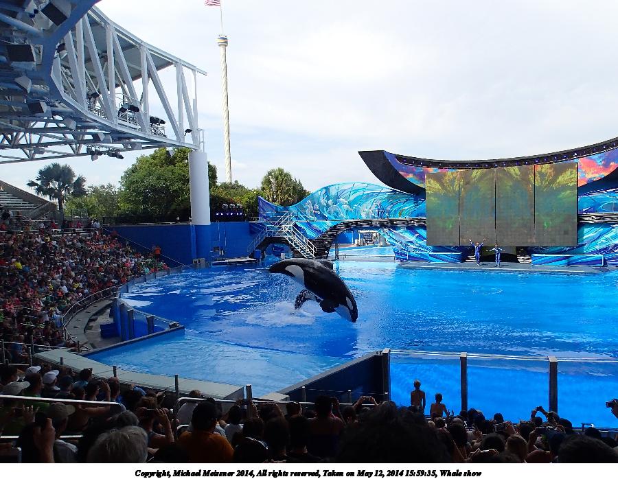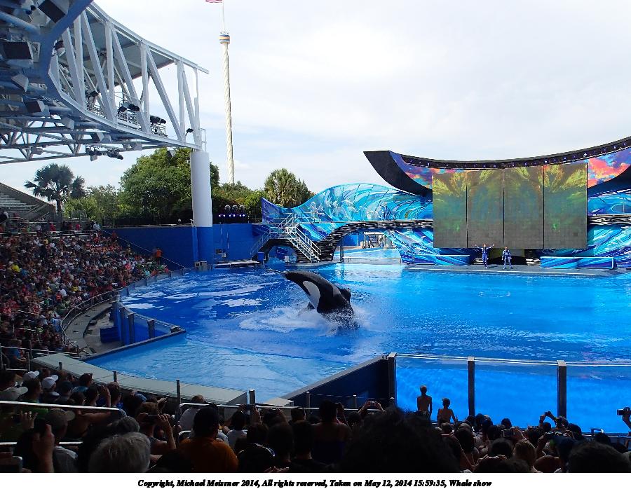 Picture #43: Whale show #32 900x698, 159,167 bytes (156K), (html file) Copyright, Michael Meissner 2014, All rights reserved Olympus TG-2 camera f/4.9, ISO 200, 1/640 sec, 18.0mm, sport mode, HQ, matrix metering, image stabilization (mode 2), noise filter n/a 35mm equivalent focal length 100.0mm Programs used: crop, raw therapee Taken by Michael Meissner on May 12, 2014 16:13:51 Last modified on November 02, 2014 at 16:30 This picture is one of my favorites. |