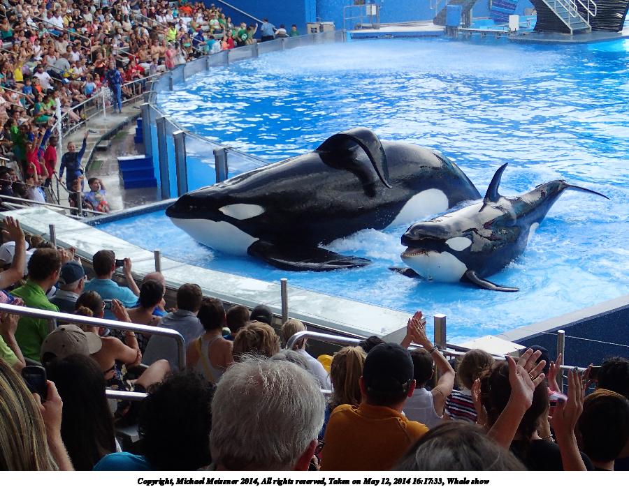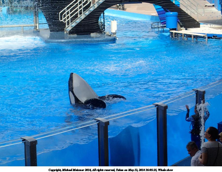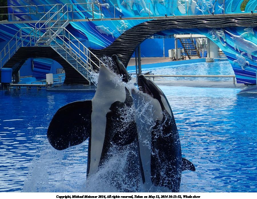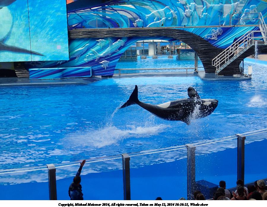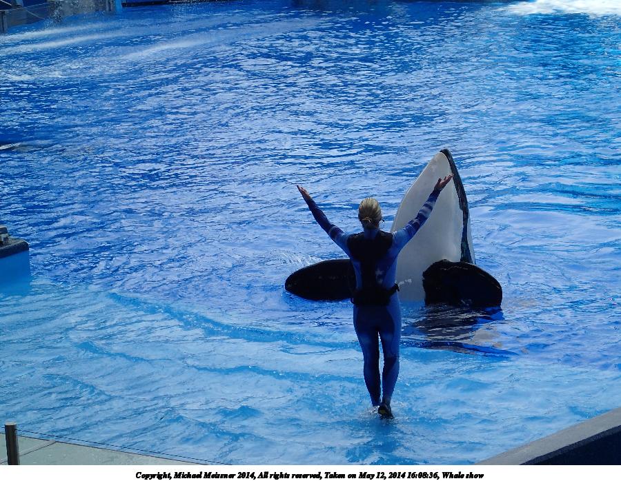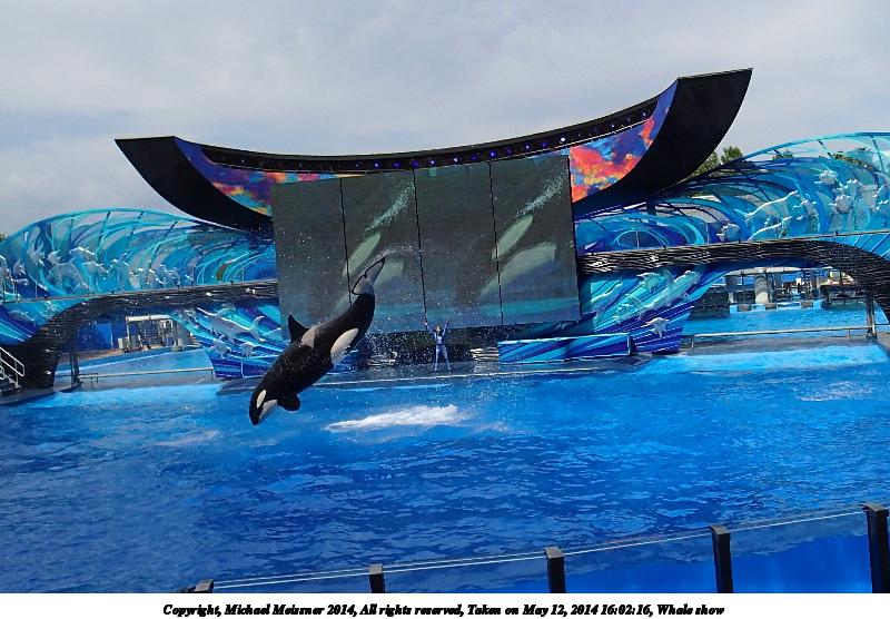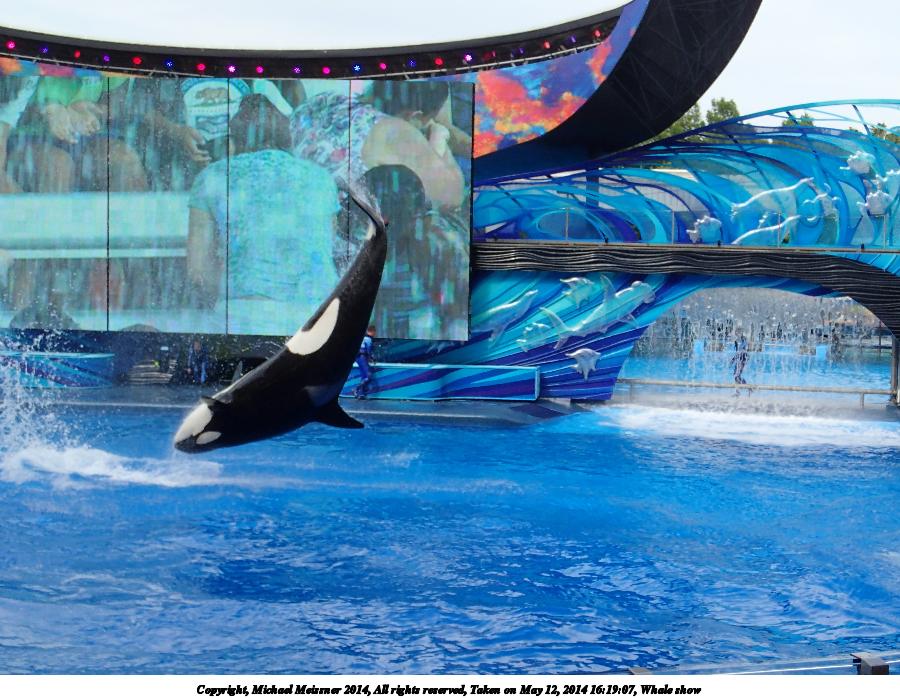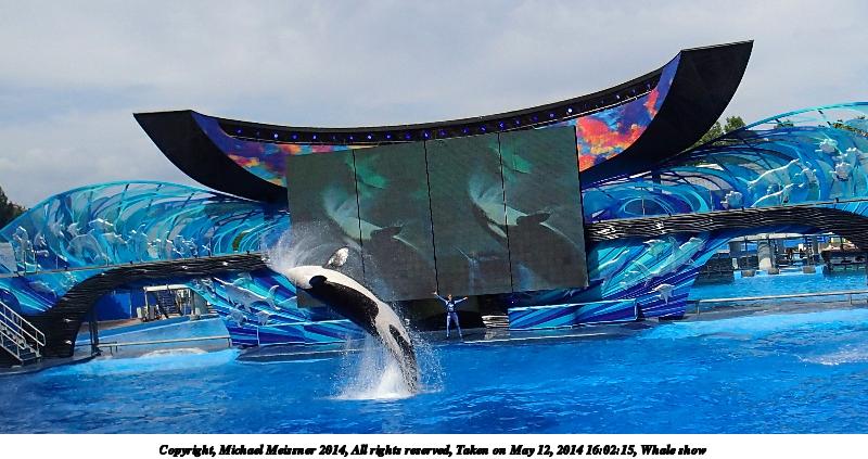 Picture #52: Whale show #24 800x823, 127,716 bytes (125K), (html file) Copyright, Michael Meissner 2014, All rights reserved Olympus TG-2 camera f/6.3, ISO 200, 1/500 sec, 18.0mm, sport mode, HQ, matrix metering, image stabilization (mode 2), noise filter n/a 35mm equivalent focal length 100.0mm Programs used: crop, gimp, raw therapee Taken by Michael Meissner on May 12, 2014 16:04:56 Last modified on November 02, 2014 at 16:27 This picture is one of my favorites. |