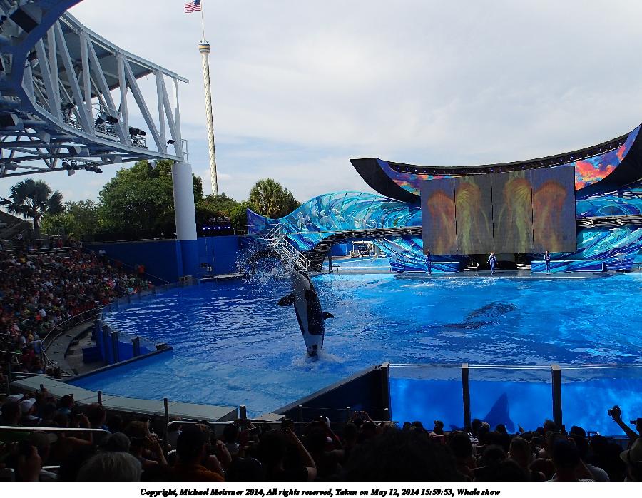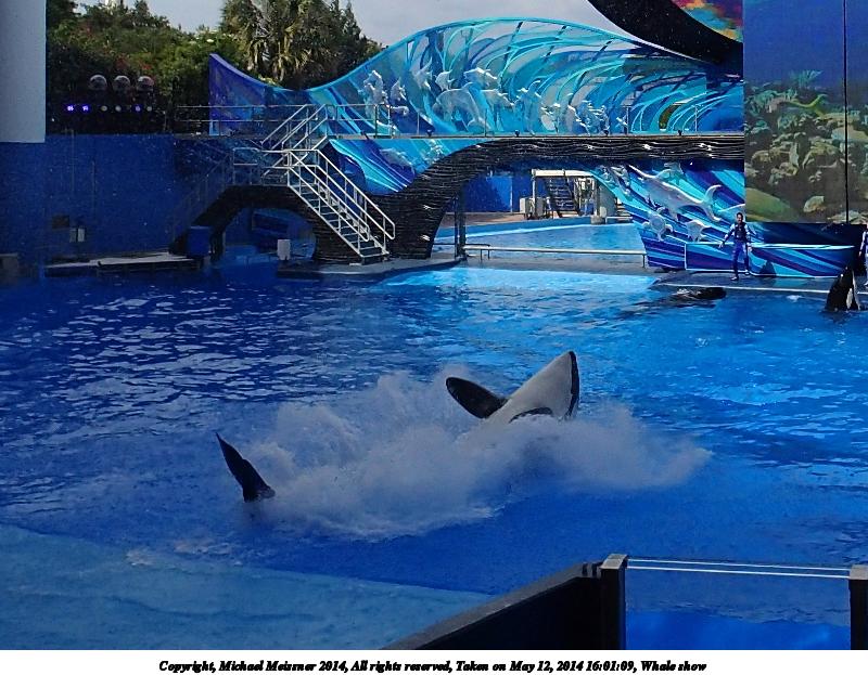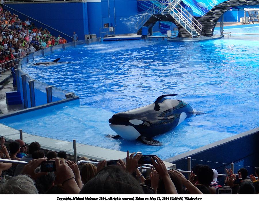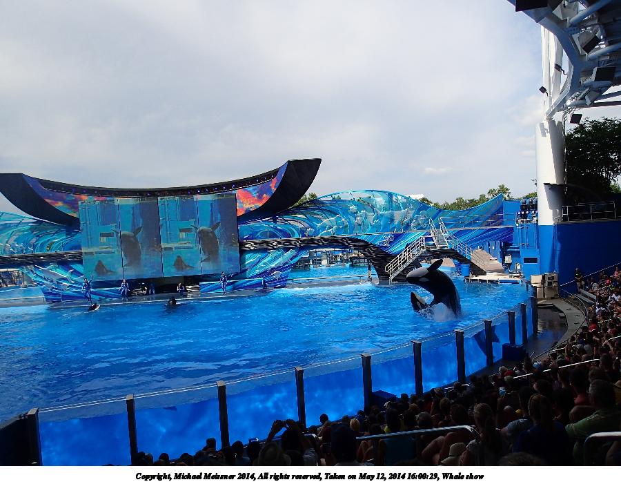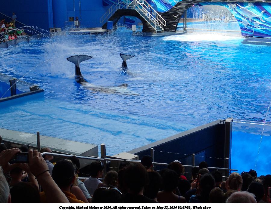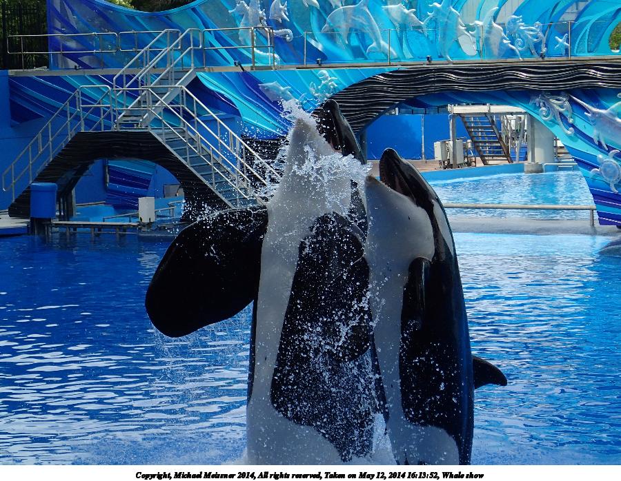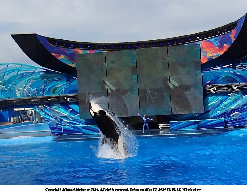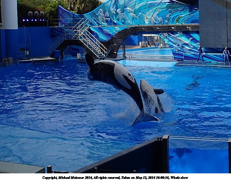 Picture #52: Whale show #24 800x823, 127,716 bytes (125K), (html file) Copyright, Michael Meissner 2014, All rights reserved Olympus TG-2 camera f/6.3, ISO 200, 1/500 sec, 18.0mm, sport mode, HQ, matrix metering, image stabilization (mode 2), noise filter n/a 35mm equivalent focal length 100.0mm Programs used: crop, gimp, raw therapee Taken by Michael Meissner on May 12, 2014 16:04:56 Last modified on November 02, 2014 at 16:27 This picture is one of my favorites. |