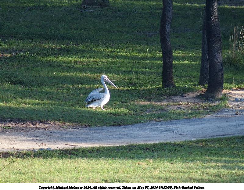 Picture #125: Pink-Backed Pelican 800x623, 147,298 bytes (144K), (html file) Copyright, Michael Meissner 2014, All rights reserved Olympus Stylus-1 camera f/2.8, ISO 100, 1/320 sec, 64.3mm, auto mode, vivid color, SHQ, matrix metering, IS Auto, noise reduction auto, noise filter low 35mm equivalent focal length 300.0mm Programs used: crop, gimp, raw therapee Taken by Michael Meissner on May 07, 2014 07:52:30 Last modified on October 26, 2014 at 07:41 |