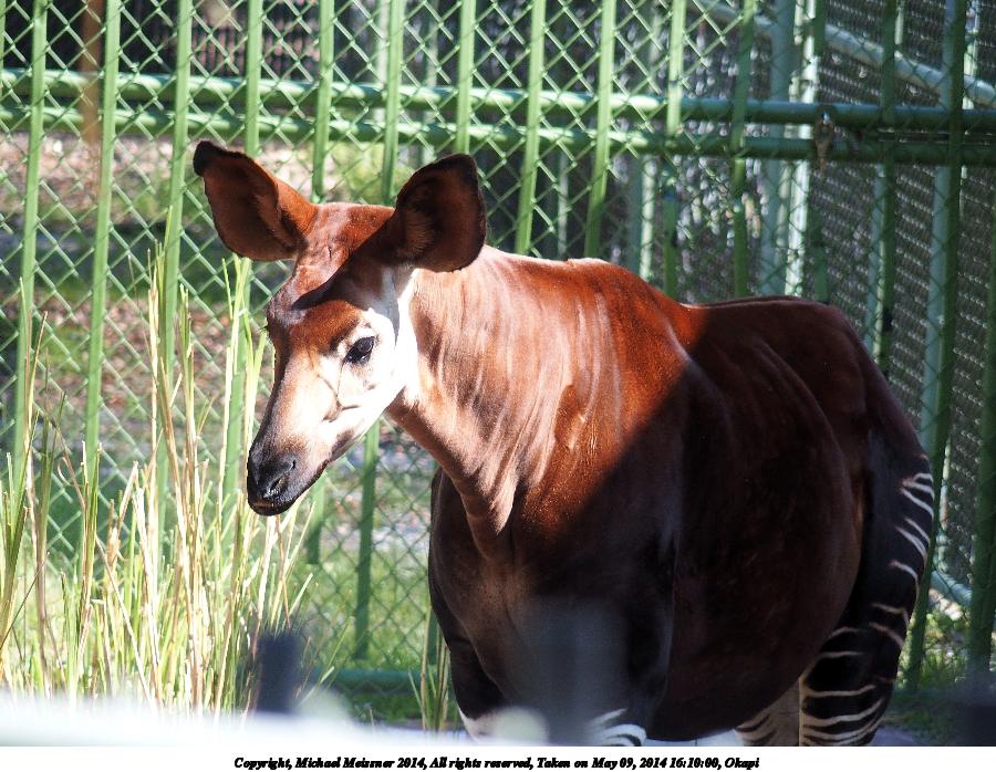 Picture #30: Okapi #3 900x698, 223,001 bytes (218K), (html file) Copyright, Michael Meissner 2014, All rights reserved Olympus Stylus-1 camera f/3.2, ISO 125, 1/200 sec, 24.0mm, auto mode, vivid color, SHQ, matrix metering, IS Auto, noise reduction auto, noise filter low 35mm equivalent focal length 112.0mm Programs used: crop, raw therapee Taken by Michael Meissner on May 09, 2014 17:11:41 Last modified on October 26, 2014 at 13:25 |