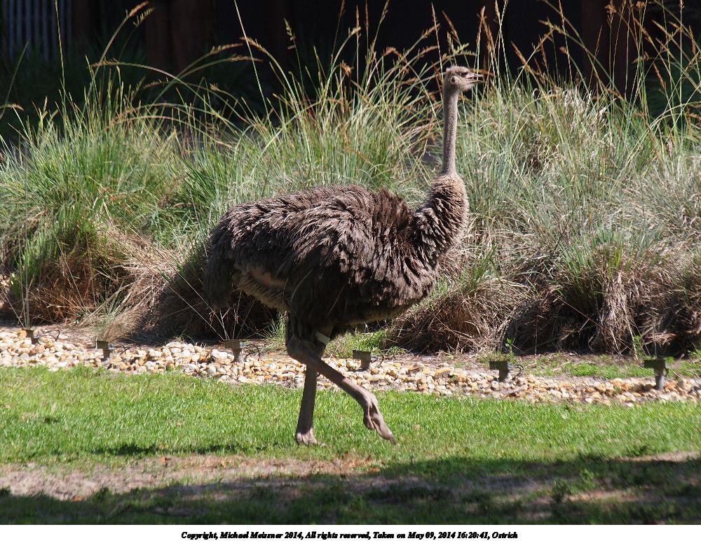 Picture #101: Ostrich #2 1000x773, 258,443 bytes (253K), (html file) Copyright, Michael Meissner 2014, All rights reserved Olympus E-5 camera with Olympus 50-200mm lens and Olympus EC-14 (1.4x) f/5.6, ISO 200, 1/400 sec, 208.0mm, auto mode, vivid color, matrix metering, IS1 (All Direction Shake IS) 35mm equivalent focal length 417.0mm, EC-14 Programs used: crop, raw therapee Taken by Michael Meissner on May 09, 2014 16:20:41 Last modified on October 26, 2014 at 12:51 |