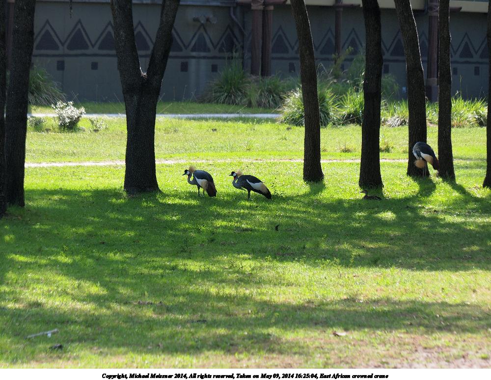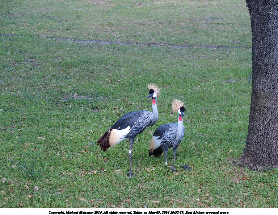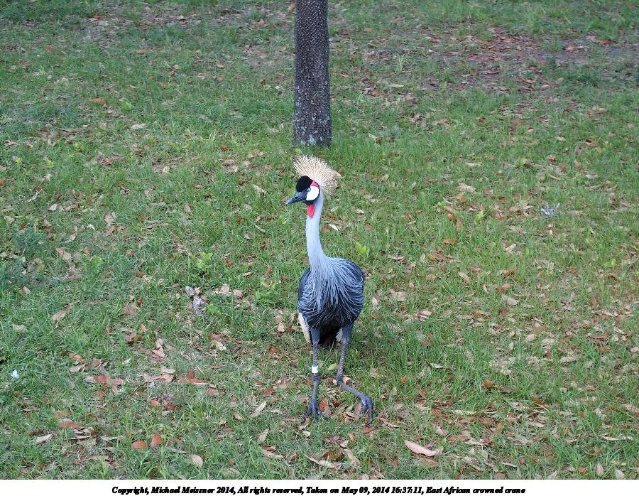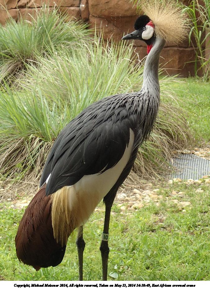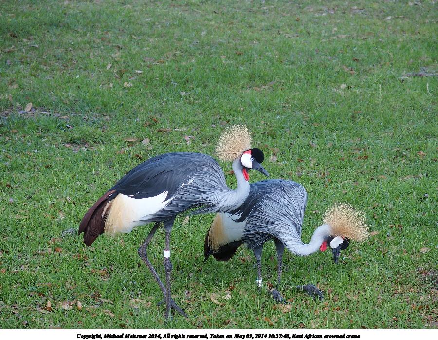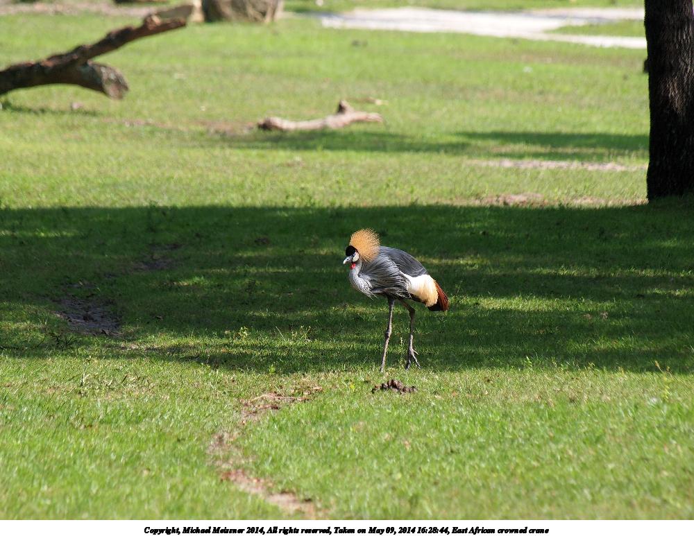 Picture #68: East African crowned crane #4 900x698, 245,379 bytes (240K), (html file) Copyright, Michael Meissner 2014, All rights reserved Olympus Stylus-1 camera f/3.2, ISO 100, 1/160 sec, 17.8mm, auto mode, vivid color, SHQ, matrix metering, IS Auto, noise reduction auto, noise filter low 35mm equivalent focal length 84.0mm Programs used: crop, raw therapee Taken by Michael Meissner on May 09, 2014 16:37:11 Last modified on October 26, 2014 at 13:07 |