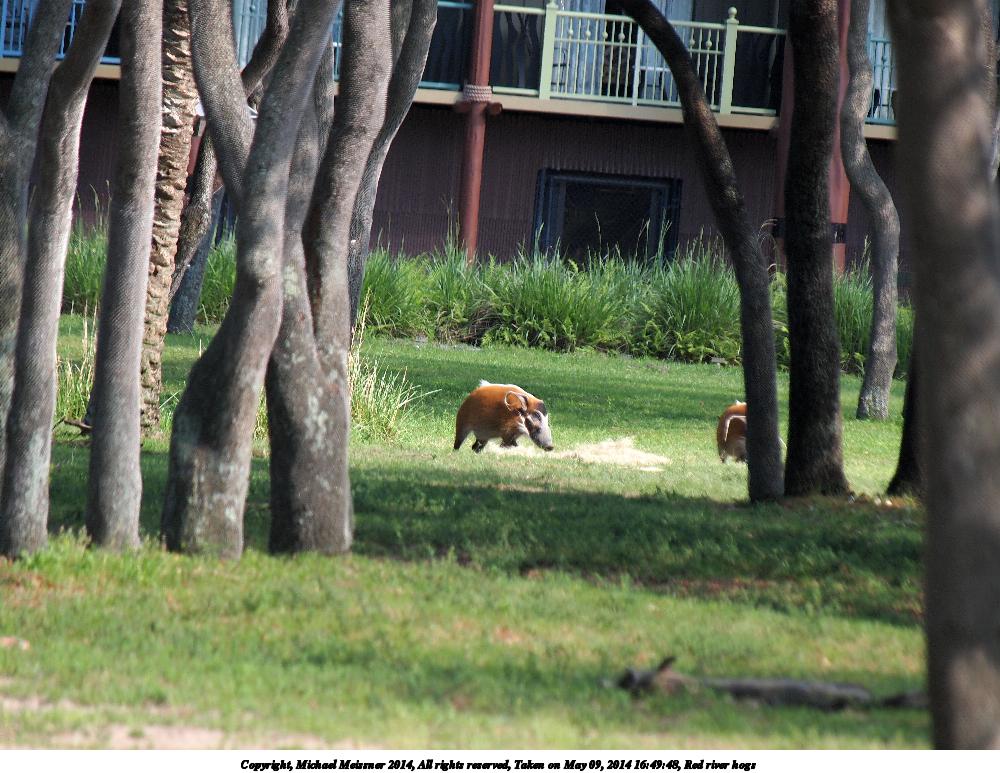 Picture #57: Red river hogs 1000x773, 156,383 bytes (153K), (html file) Copyright, Michael Meissner 2014, All rights reserved Olympus E-5 camera with Olympus 50-200mm lens and Olympus EC-14 (1.4x) f/5.0, ISO 200, 1/250 sec, 283.0mm, auto mode, vivid color, matrix metering, IS1 (All Direction Shake IS) 35mm equivalent focal length 567.0mm, EC-14 Programs used: crop, raw therapee Taken by Michael Meissner on May 09, 2014 16:49:48 Last modified on October 26, 2014 at 13:12 |