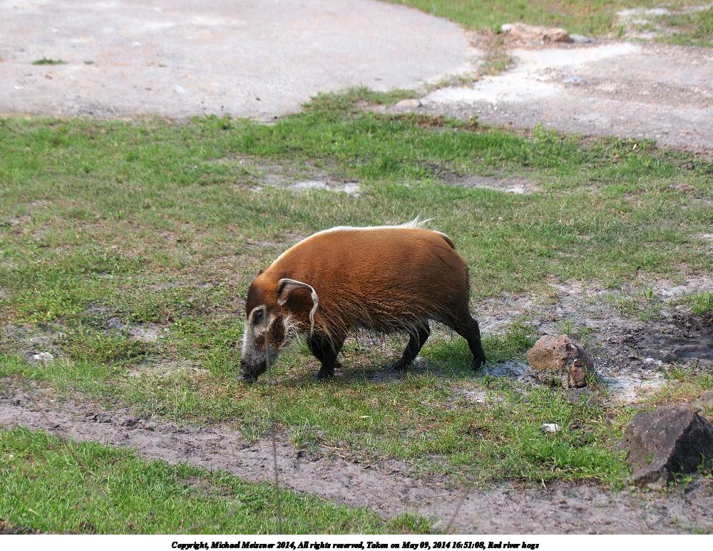 Picture #54: Red river hogs #4 1000x773, 240,489 bytes (235K), (html file) Copyright, Michael Meissner 2014, All rights reserved Olympus E-5 camera with Olympus 50-200mm lens and Olympus EC-14 (1.4x) f/4.0, ISO 200, 1/250 sec, 112.0mm, auto mode, vivid color, matrix metering, IS1 (All Direction Shake IS) 35mm equivalent focal length 224.0mm, EC-14 Programs used: crop, raw therapee Taken by Michael Meissner on May 09, 2014 16:50:42 Last modified on October 26, 2014 at 13:13 |