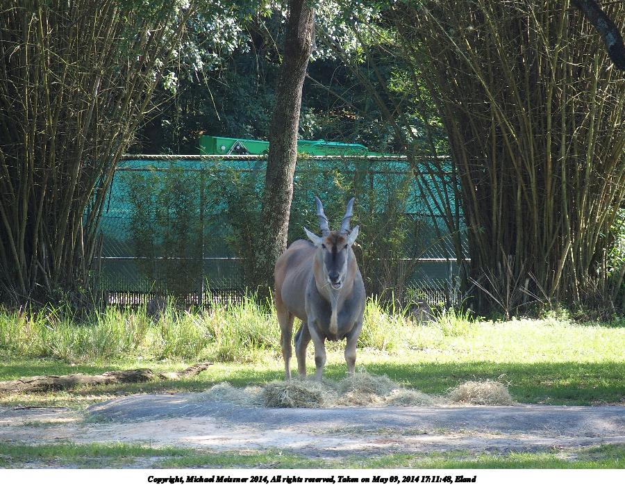 Picture #29: Eland #2 900x698, 220,249 bytes (216K), (html file) Copyright, Michael Meissner 2014, All rights reserved Olympus Stylus-1 camera f/2.8, ISO 125, 1/250 sec, 64.3mm, auto mode, vivid color, SHQ, matrix metering, IS Auto, noise reduction auto, noise filter low 35mm equivalent focal length 300.0mm Programs used: crop, raw therapee Taken by Michael Meissner on May 09, 2014 17:11:48 Last modified on October 26, 2014 at 13:26 |