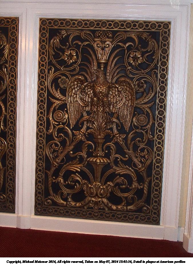 Picture #91: Detail in plaque at American pavilion 675x923, 174,023 bytes (170K), (html file) Copyright, Michael Meissner 2014, All rights reserved Olympus Stylus-1 camera f/2.8, ISO 500, flash (+0.33 flash compensation), 1/40 sec, 8.1mm, auto mode, vivid color, SHQ, matrix metering, IS Auto, noise reduction auto, noise filter low 35mm equivalent focal length 38.0mm Programs used: crop, raw therapee, rotate left Taken by Michael Meissner on May 07, 2014 15:01:36 Last modified on October 25, 2014 at 19:02 |