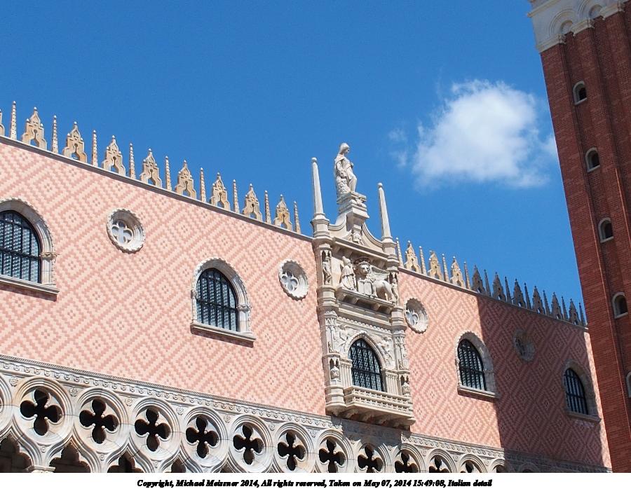 Picture #85: Italian detail 900x698, 139,597 bytes (137K), (html file) Copyright, Michael Meissner 2014, All rights reserved Olympus Stylus-1 camera f/5.0, ISO 100, 1/800 sec, 6.0mm, auto mode, vivid color, SHQ, matrix metering, digital zoom x2, IS Auto, noise reduction auto, noise filter low 35mm equivalent focal length 56.0mm, digital zoom x2 Programs used: crop, raw therapee Taken by Michael Meissner on May 07, 2014 15:49:08 Last modified on October 25, 2014 at 19:05 |