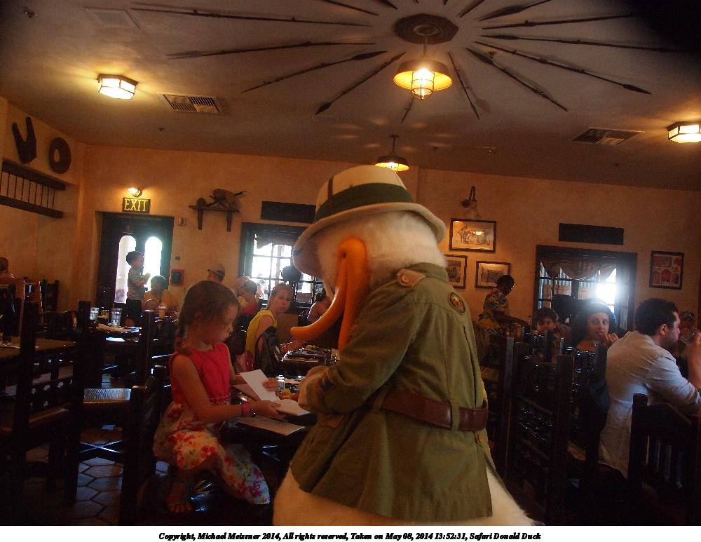 Picture #10: Safari Donald Duck 1000x773, 117,294 bytes (115K), (html file) Copyright, Michael Meissner 2014, All rights reserved Olympus E-5 camera with Olympus 14-54mm f/2.8-3.5 lens f/2.8, ISO 1250, 1/60 sec, 14.0mm, auto mode, vivid color, matrix metering, IS1 (All Direction Shake IS) 35mm equivalent focal length 28.0mm Programs used: crop, raw therapee Taken by Michael Meissner on May 08, 2014 13:52:31 Last modified on November 02, 2014 at 23:46 |