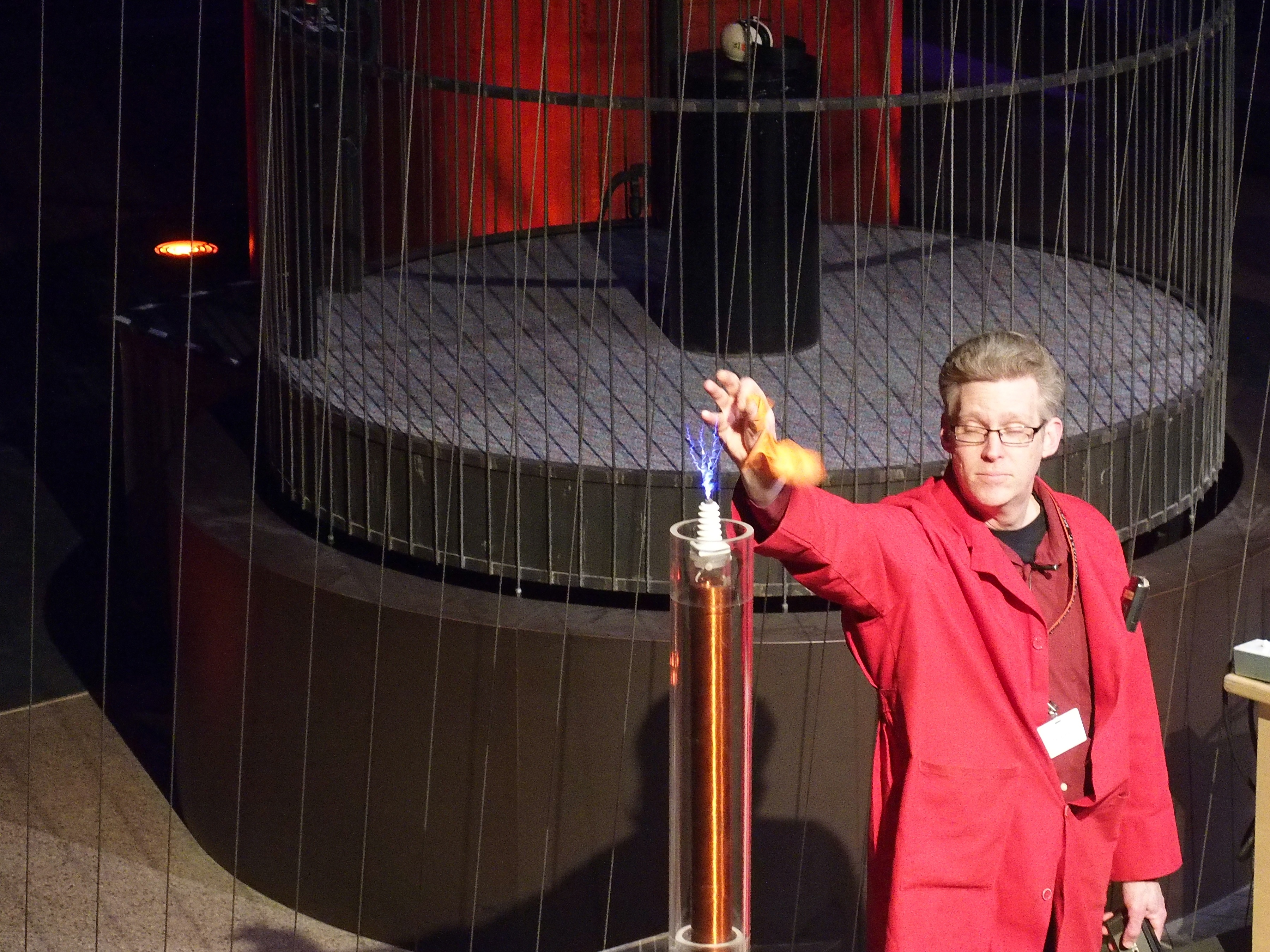 Picture #17: Theater of Electricity #9 Thumb: 450x338, 37,180 bytes (37K) Small: 900x698, 91,074 bytes (89K), (html file) Large: 3600x2700, 2,430,178 bytes (2.3M), (html file) Copyright, Michael Meissner 2015, All rights reserved Olympus Stylus-1 camera f/2.8, ISO 1600, 1/3 sec, 6.0mm, auto mode, vivid color, matrix metering, IS Auto, noise filter low 35mm equivalent focal length 28.0mm Programs used: crop, raw therapee Taken by Michael Meissner on March 22, 2015 15:26:10 Last modified on March 27, 2015 at 08:57 |