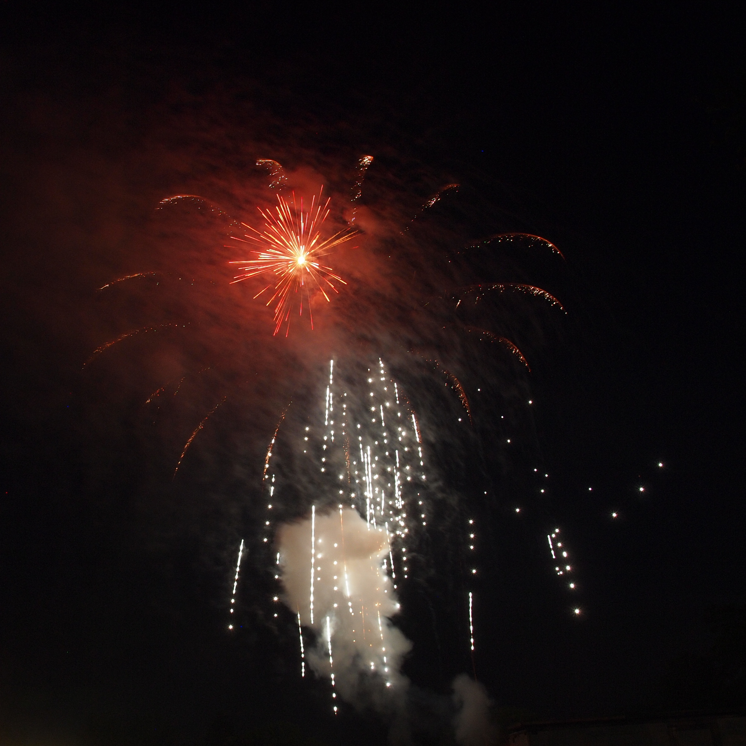 Picture #41: Ayer fireworks Small: 800x823, 64,325 bytes (63K), (html file) Large: 2400x2400, 2,899,732 bytes (2.8M), (html file) Olympus E-5 camera with Olympus 14-54mm f/2.8-3.5 lens f/5.6, ISO 200, 1.4 sec, 14.0mm, bulb mode, natural color, HQ, matrix metering, manual focus, noise filter low 35mm equivalent focal length 28.0mm Extra equipment used: Tripod, cable release Programs used: crop, gimp Taken by Michael Meissner on July 04, 2015 21:29:58 Last modified on July 10, 2015 at 01:07 This picture is one of my favorites. |