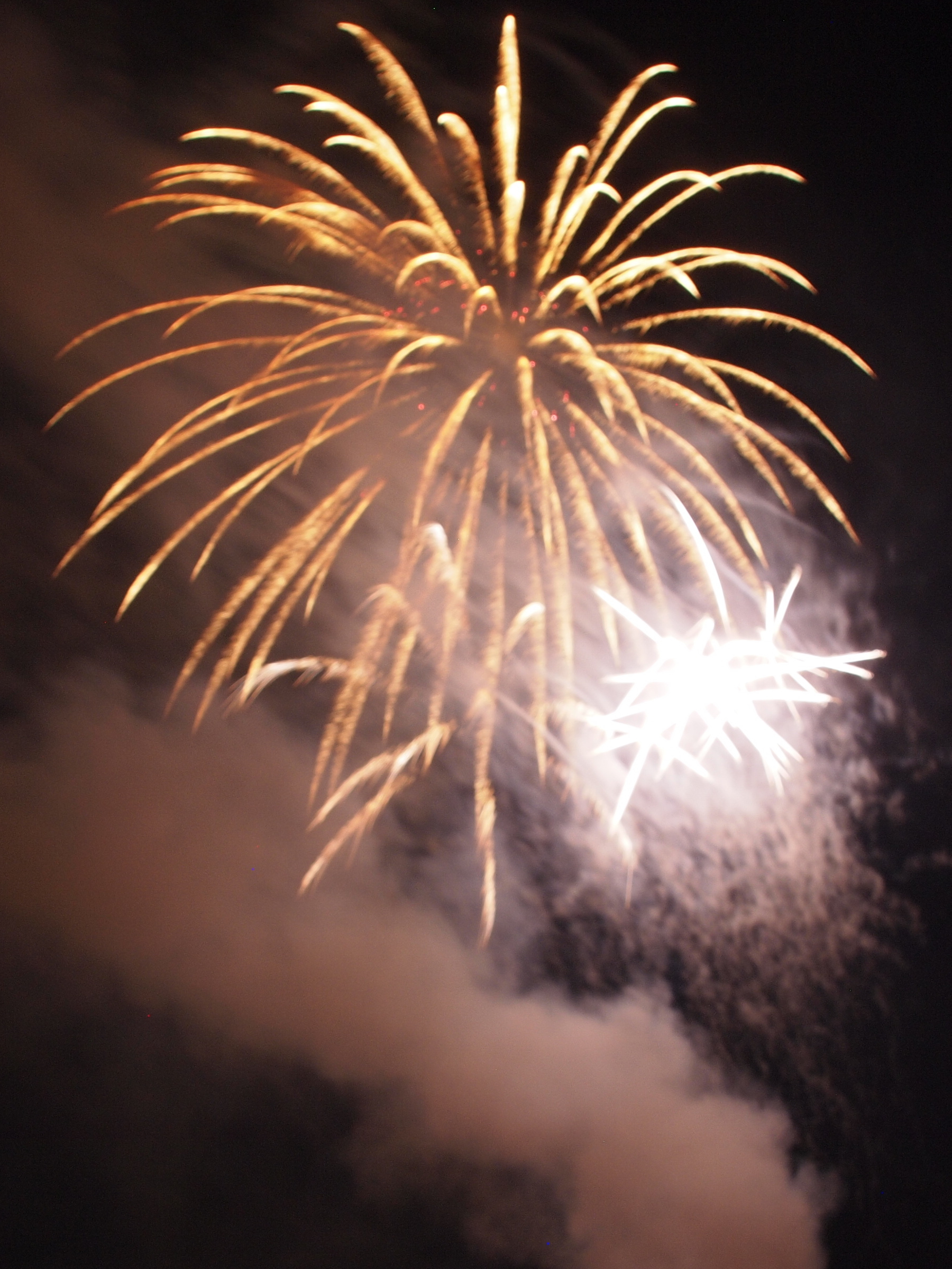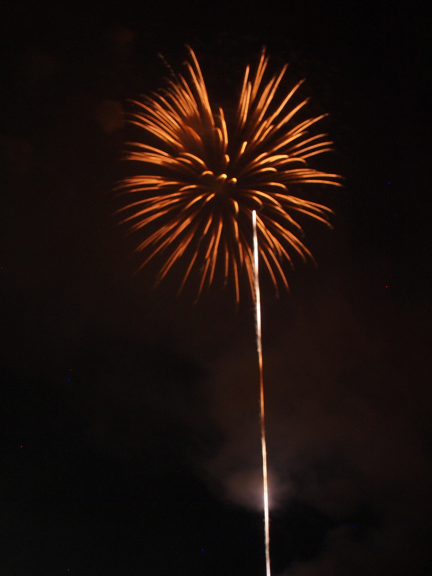 Picture #34: Ayer fireworks #8 Small: 800x623, 66,756 bytes (66K), (html file) Large: 3200x2400, 3,819,595 bytes (3.6M), (html file) Copyright, Michael Meissner 2015, All rights reserved Olympus E-5 camera with Olympus 14-54mm f/2.8-3.5 lens f/5.6, ISO 200, 1.2 sec, 14.0mm, bulb mode, natural color, HQ, matrix metering, manual focus, noise filter low 35mm equivalent focal length 28.0mm Extra equipment used: Tripod, cable release Programs used: crop, gimp Taken by Michael Meissner on July 04, 2015 21:33:23 Last modified on July 09, 2015 at 23:55 This picture is one of my favorites. |