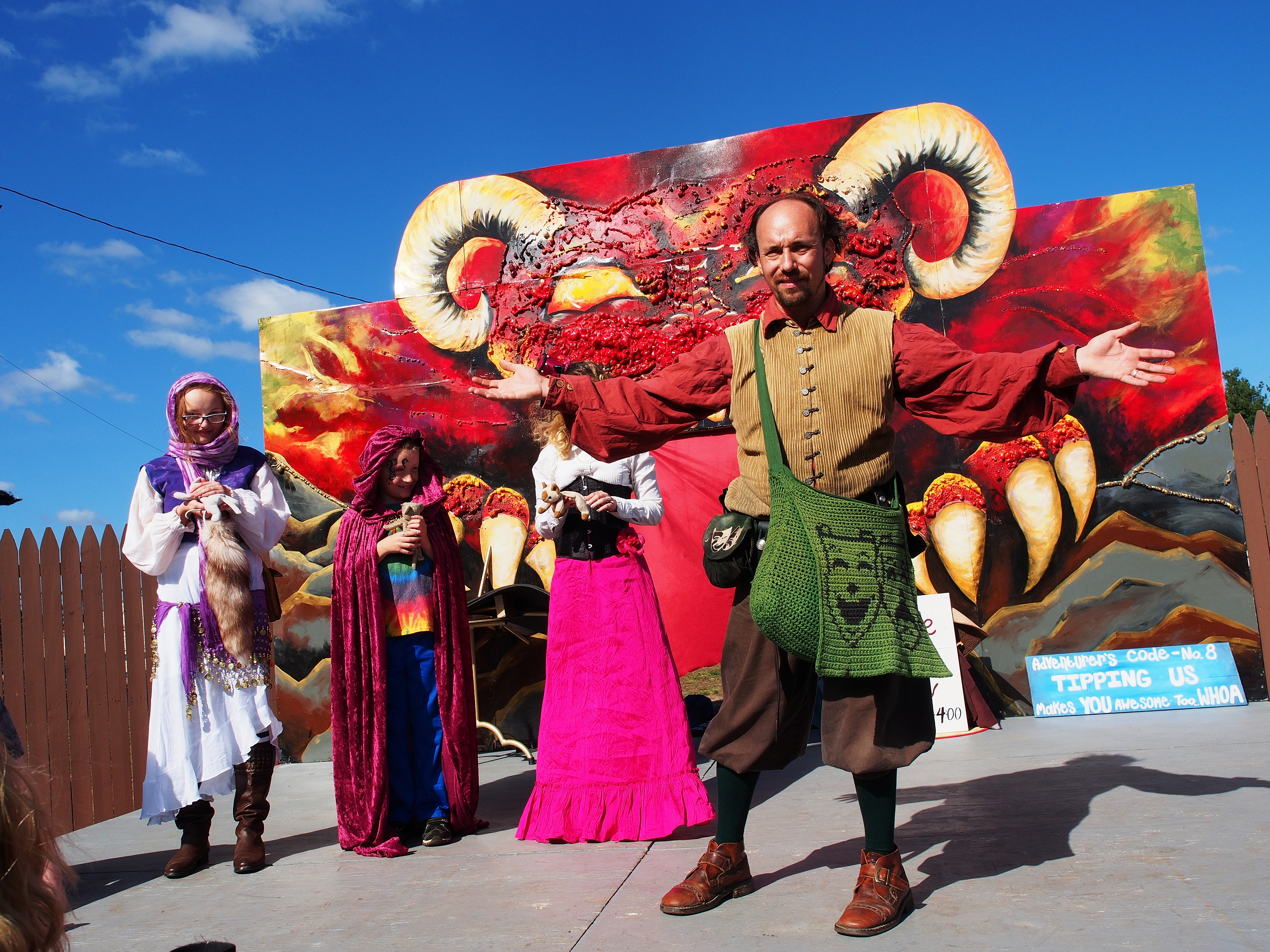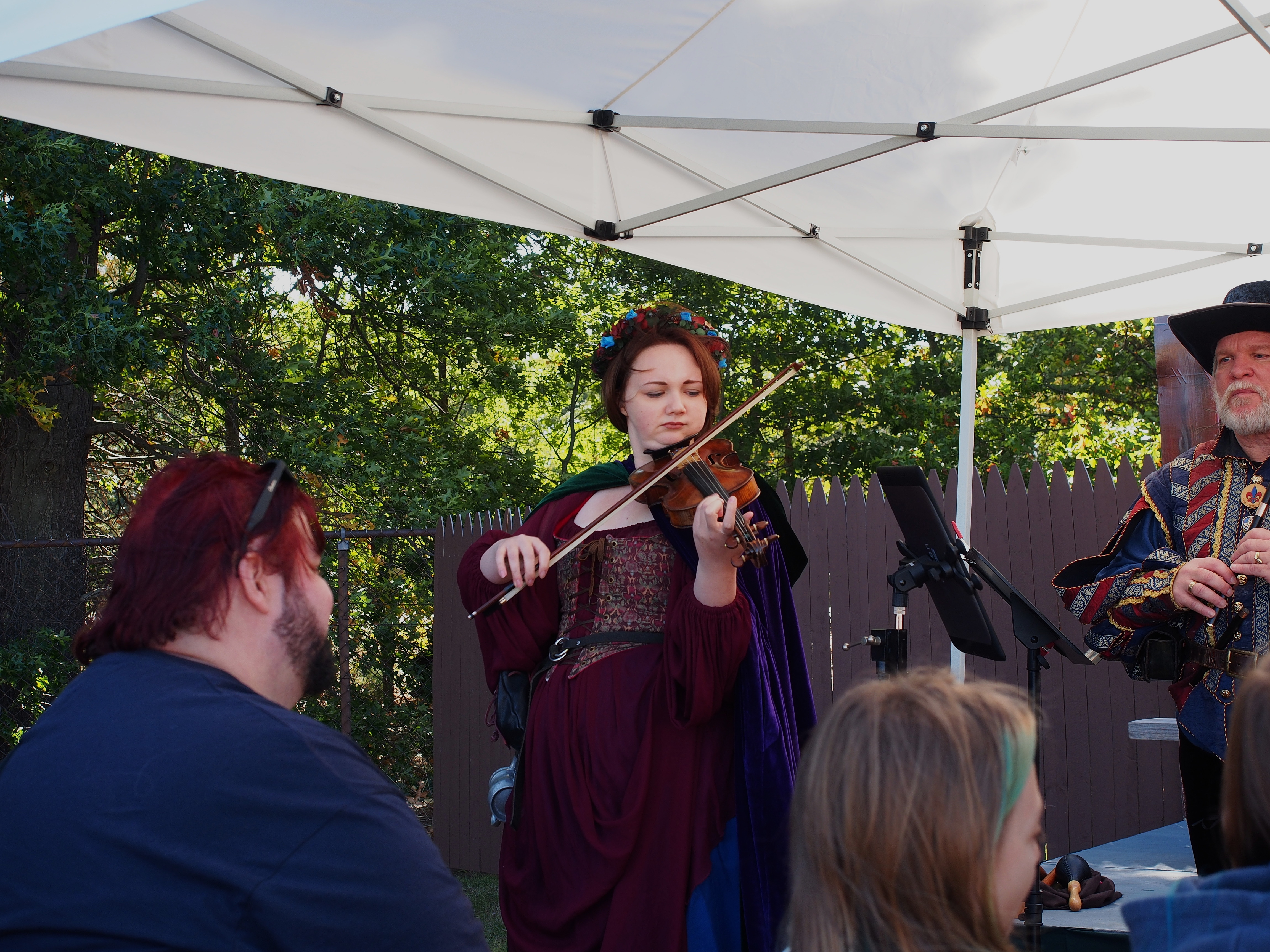 Picture #5: Eleves or faries attend the faire Small: 1000x690, 211,938 bytes (207K), (html file) Large: 3000x2000, 5,308,339 bytes (5.1M), (html file) Copyright, Michael Meissner 2015, All rights reserved Olympus E-M5-I camera with Olympus-m43 12-40mm f/2.8 lens f/6.3, ISO 200, 1/320 sec, 19.0mm, auto mode, vivid color, matrix metering, bias 0.3, IS1 (All Direction Shake IS), noise filter low 35mm equivalent focal length 38.0mm Programs used: crop, gimp, raw therapee Taken by Michael Meissner on October 04, 2015 14:36:09 Last modified on December 19, 2015 at 22:32 |