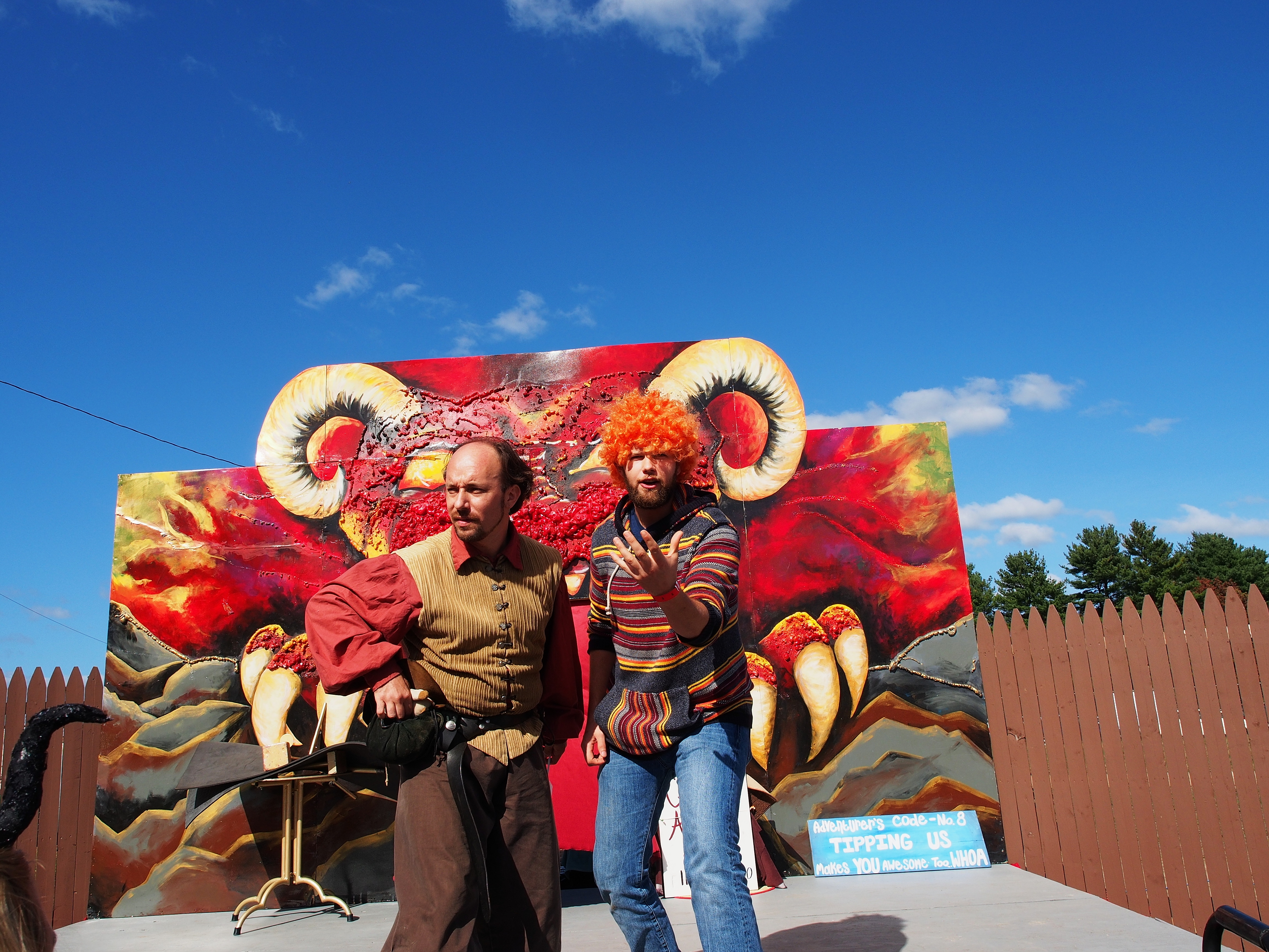 Picture #2: Creepy Bard and Apprentice #2 Small: 920x713, 167,258 bytes (164K), (html file) Large: 4600x3450, 4,325,836 bytes (4.1M), (html file) Copyright, Michael Meissner 2015, All rights reserved Olympus E-M5-I camera with Olympus-m43 12-40mm f/2.8 lens f/2.8, ISO 1000, 1/60 sec, 12.0mm, auto mode, vivid color, matrix metering, IS1 (All Direction Shake IS), noise filter low 35mm equivalent focal length 24.0mm Programs used: crop, raw therapee Taken by Michael Meissner on October 04, 2015 16:16:39 Last modified on December 19, 2015 at 22:48 |