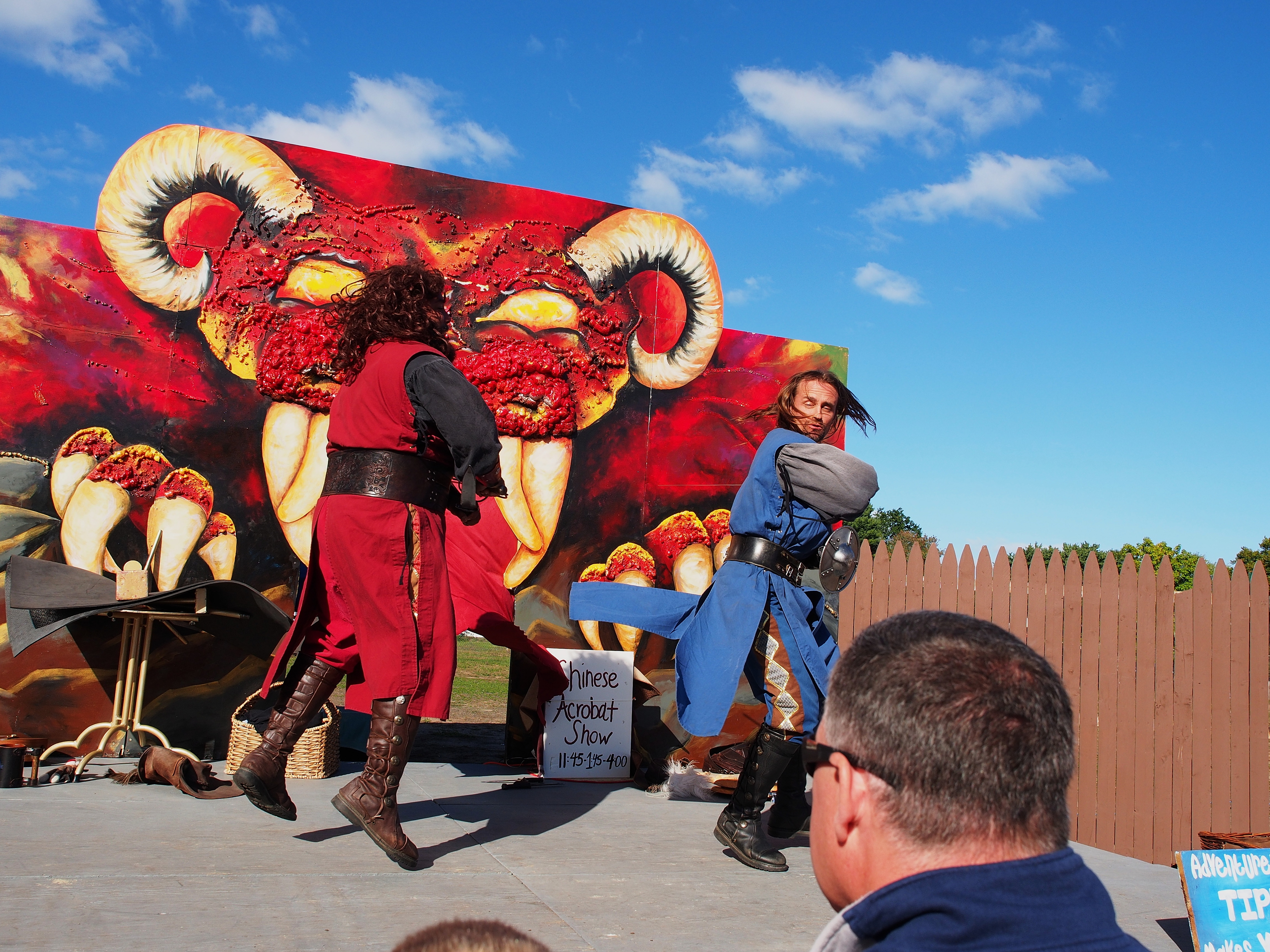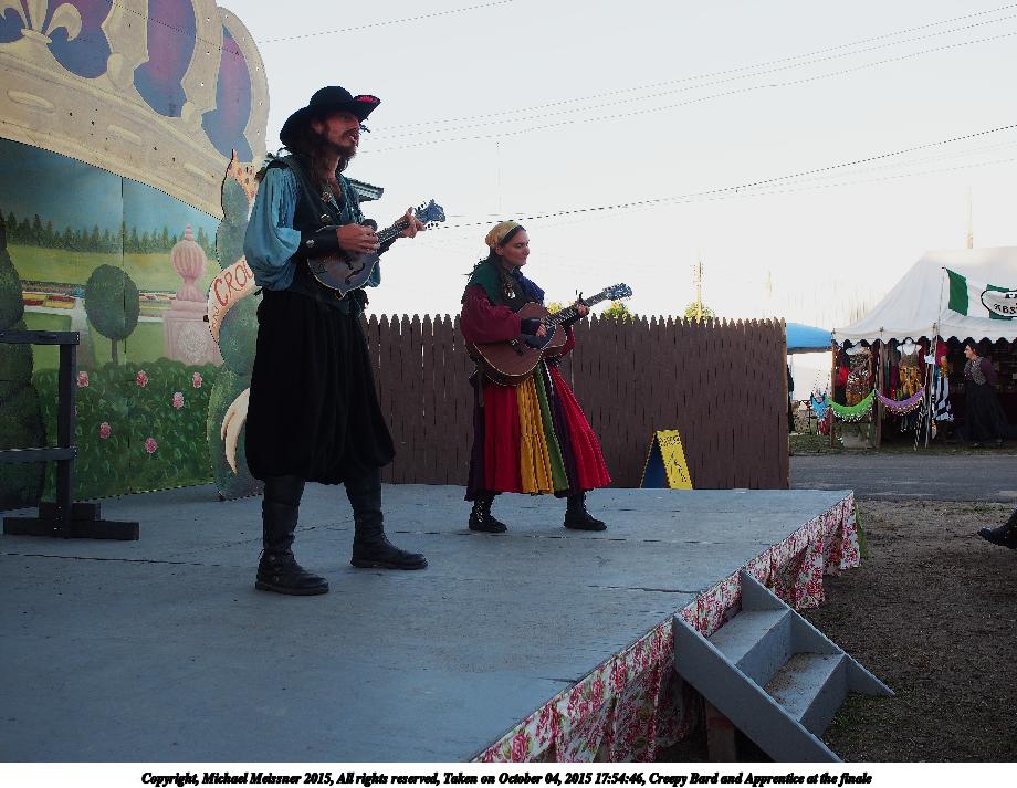 Picture #5: Creepy Bard and Apprentice at the finale Small: 920x713, 121,648 bytes (119K), (html file) Large: 4600x3450, 3,153,528 bytes (3.0M), (html file) Copyright, Michael Meissner 2015, All rights reserved Olympus E-M5-I camera with Olympus-m43 12-40mm f/2.8 lens f/4.0, ISO 200, 1/125 sec, 19.0mm, auto mode, vivid color, center weight metering, IS1 (All Direction Shake IS), noise filter low 35mm equivalent focal length 38.0mm Programs used: crop, raw therapee Taken by Michael Meissner on October 04, 2015 17:54:46 Last modified on December 20, 2015 at 01:17 |