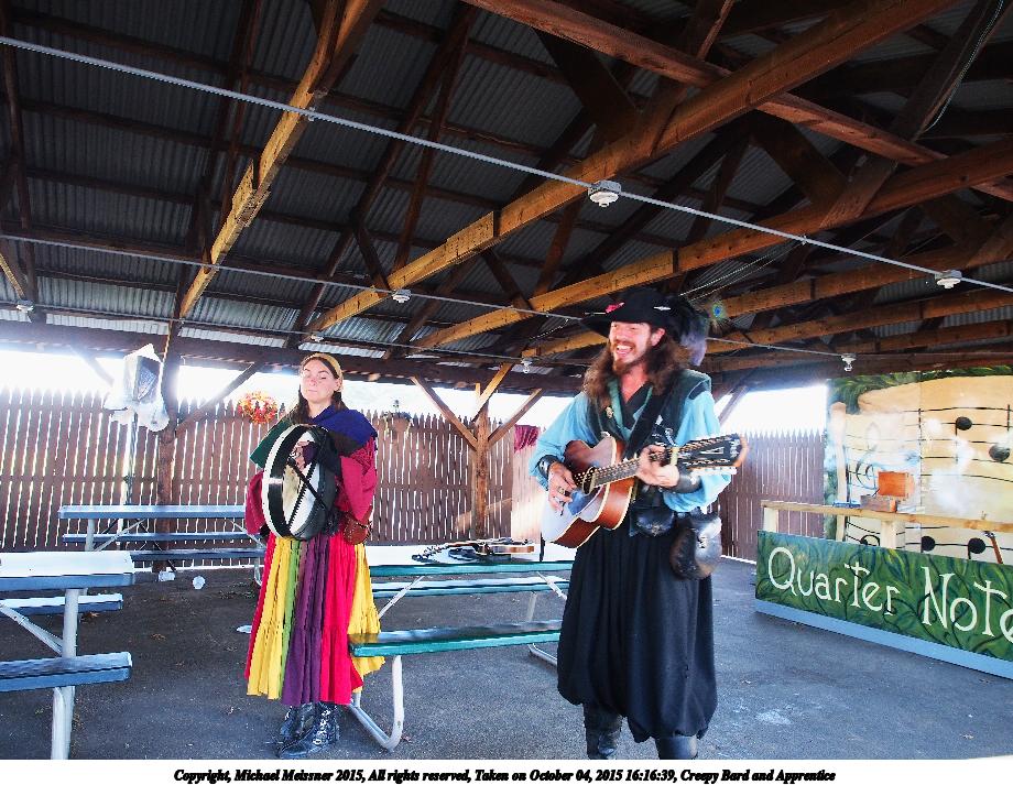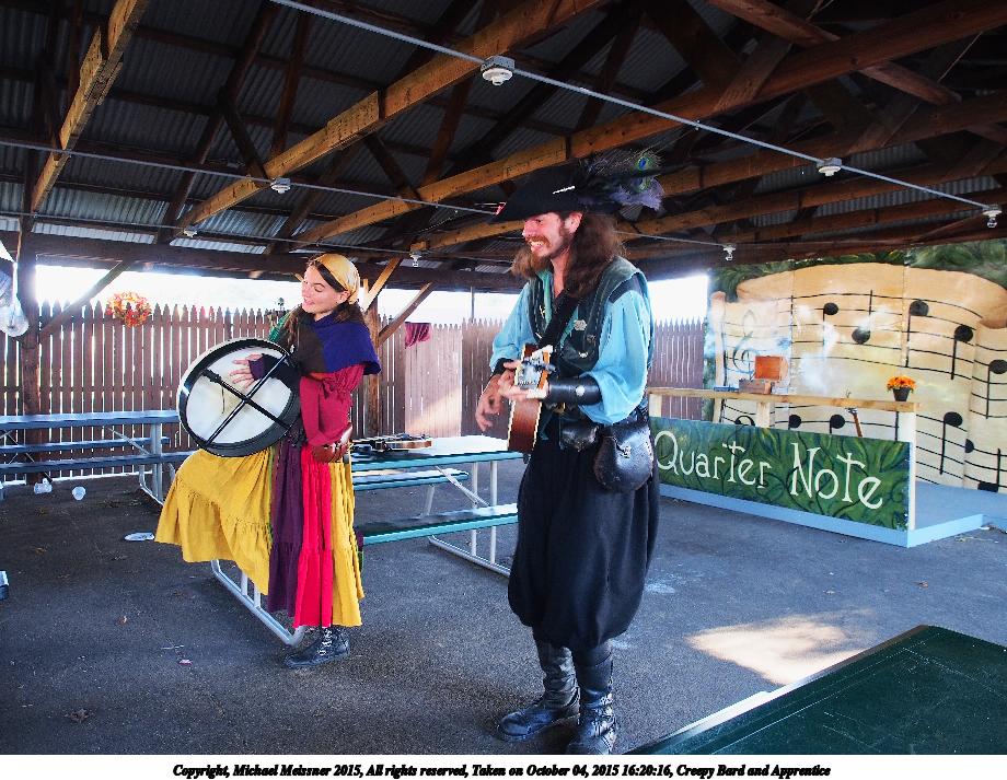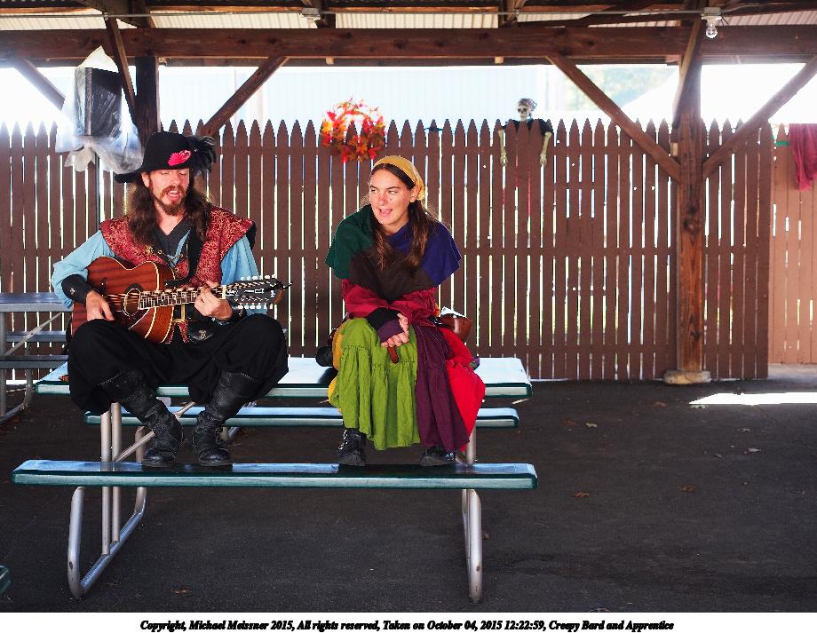 Picture #4: Creepy Bard and Apprentice #4 Small: 690x943, 170,768 bytes (167K), (html file) Large: 3450x4600, 9,895,839 bytes (9.4M), (html file) Copyright, Michael Meissner 2015, All rights reserved Olympus E-M5-I camera with Olympus-m43 12-40mm f/2.8 lens f/2.8, ISO 1250, 1/60 sec, 12.0mm, auto mode, vivid color, matrix metering, bias 0.3, IS1 (All Direction Shake IS), noise filter low 35mm equivalent focal length 24.0mm Programs used: crop, gimp, raw therapee, rotate left Taken by Michael Meissner on October 04, 2015 16:19:05 Last modified on December 19, 2015 at 22:47 |