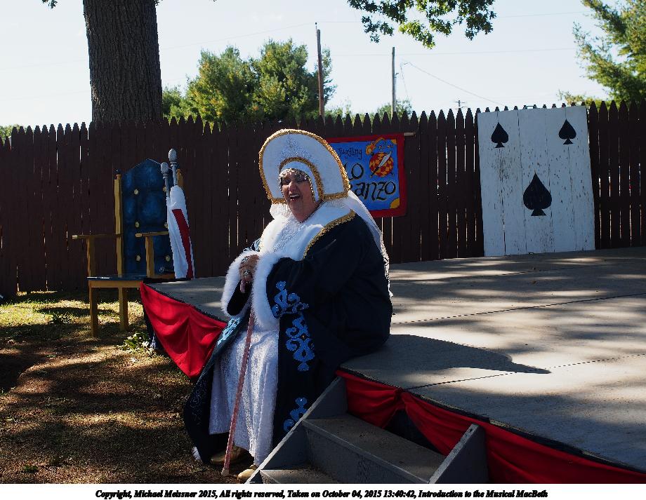 Picture #3: Introduction to the Musical MacBeth #2 Small: 920x713, 146,405 bytes (143K), (html file) Large: 4600x3450, 3,664,595 bytes (3.5M), (html file) Copyright, Michael Meissner 2015, All rights reserved Olympus E-M5-I camera with Olympus-m43 12-40mm f/2.8 lens f/5.0, ISO 200, 1/250 sec, 24.0mm, auto mode, vivid color, matrix metering, IS1 (All Direction Shake IS), noise filter low 35mm equivalent focal length 48.0mm Programs used: crop, raw therapee Taken by Michael Meissner on October 04, 2015 13:50:16 Last modified on December 19, 2015 at 22:02 |