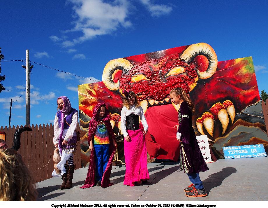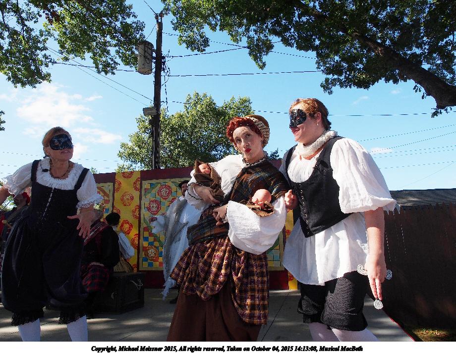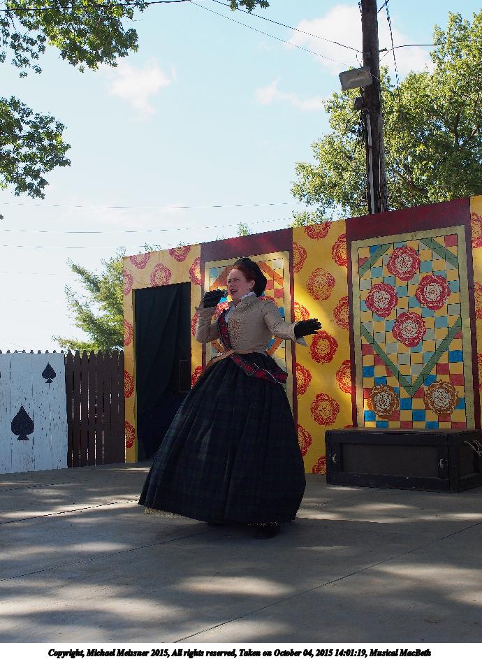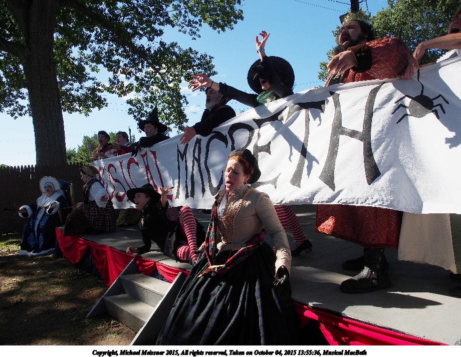 Picture #7: Musical MacBeth #4 Small: 920x713, 183,293 bytes (179K), (html file) Large: 4600x3450, 11,236,859 bytes (11M), (html file) Copyright, Michael Meissner 2015, All rights reserved Olympus E-M5-I camera with Olympus-m43 12-40mm f/2.8 lens f/7.1, ISO 200, 1/500 sec, 12.0mm, auto mode, vivid color, matrix metering, IS1 (All Direction Shake IS), noise filter low 35mm equivalent focal length 24.0mm Programs used: crop, gimp, raw therapee Taken by Michael Meissner on October 04, 2015 13:55:36 Last modified on December 19, 2015 at 22:05 |