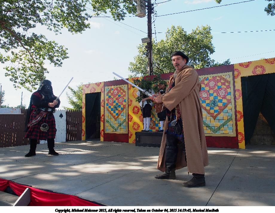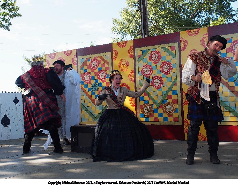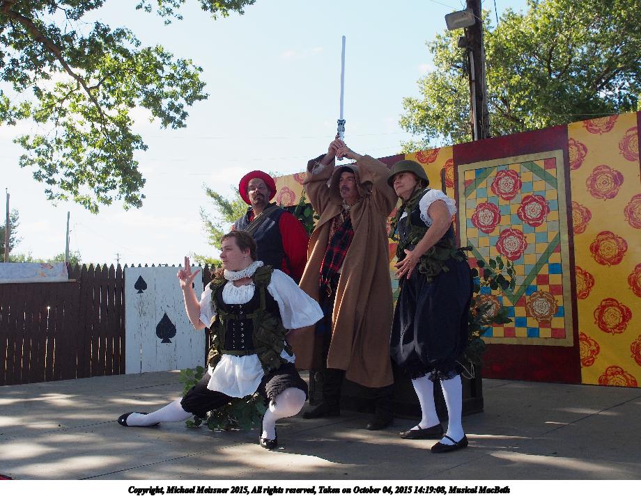 Picture #18: Musical MacBeth #12 Small: 920x713, 185,248 bytes (181K), (html file) Large: 4600x3450, 11,767,744 bytes (12M), (html file) Copyright, Michael Meissner 2015, All rights reserved Olympus E-M5-I camera with Olympus-m43 12-40mm f/2.8 lens f/6.3, ISO 200, 1/320 sec, 12.0mm, auto mode, vivid color, matrix metering, IS1 (All Direction Shake IS), noise filter low 35mm equivalent focal length 24.0mm Programs used: crop, gimp, raw therapee Taken by Michael Meissner on October 04, 2015 14:13:08 Last modified on December 19, 2015 at 22:22 |