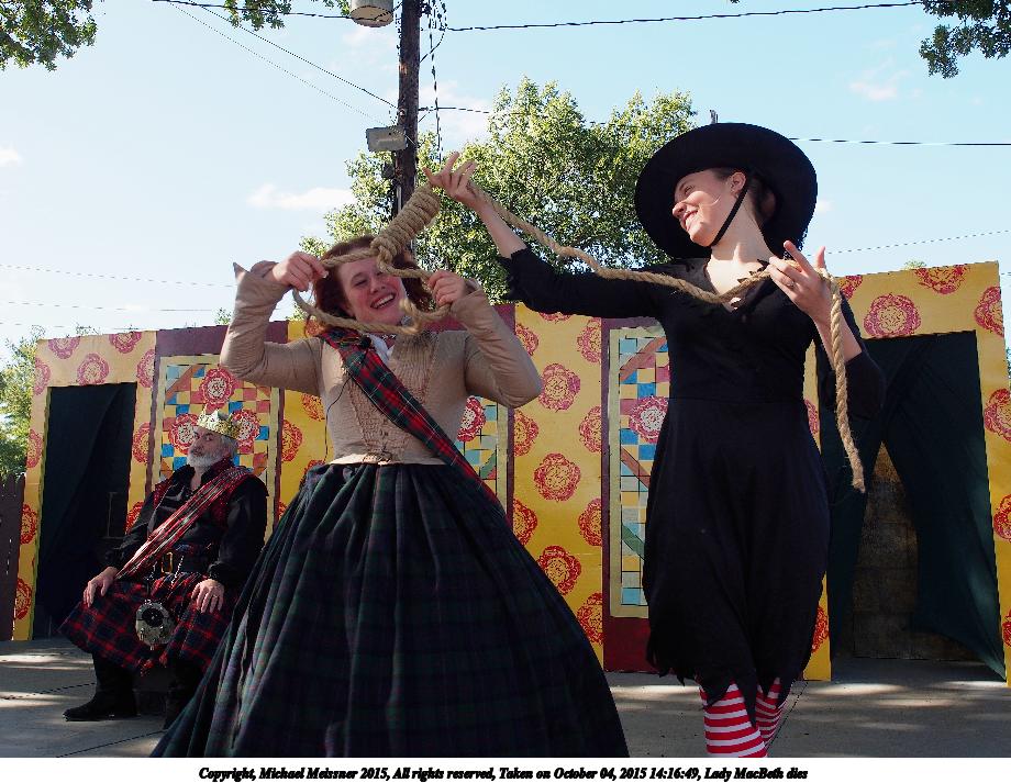 Picture #11: Musical MacBeth #6 Small: 920x713, 169,818 bytes (166K), (html file) Large: 4600x3450, 9,579,282 bytes (9.1M), (html file) Copyright, Michael Meissner 2015, All rights reserved Olympus E-M5-I camera with Olympus-m43 12-40mm f/2.8 lens f/5.0, ISO 200, 1/250 sec, 12.0mm, auto mode, vivid color, matrix metering, IS1 (All Direction Shake IS), noise filter low 35mm equivalent focal length 24.0mm Programs used: crop, gimp, raw therapee Taken by Michael Meissner on October 04, 2015 13:58:54 Last modified on December 19, 2015 at 22:09 |