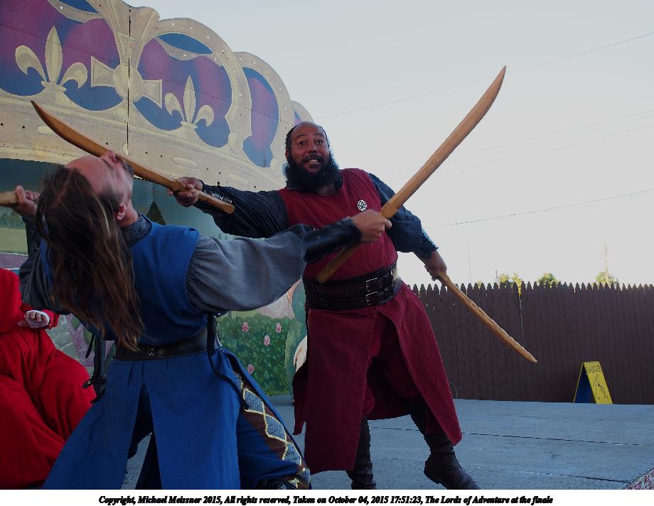 Picture #2: The Lords of Adventure at the finale Small: 800x823, 112,362 bytes (110K), (html file) Large: 3200x3200, 6,024,591 bytes (5.7M), (html file) Copyright, Michael Meissner 2015, All rights reserved Olympus E-M5-I camera with Olympus-m43 12-40mm f/2.8 lens f/3.5, ISO 200, 1/125 sec, 19.0mm, auto mode, vivid color, center weight metering, IS1 (All Direction Shake IS), noise filter low 35mm equivalent focal length 38.0mm Programs used: crop, gimp, raw therapee Taken by Michael Meissner on October 04, 2015 17:50:17 Last modified on December 20, 2015 at 01:16 |