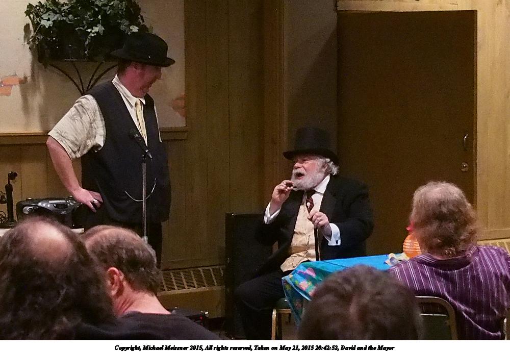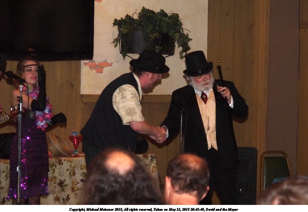 Picture #28: David and the Mayor #3 Small: 600x923, 85,936 bytes (84K), (html file) Large: 1800x2700, 3,090,999 bytes (2.9M), (html file) Copyright, Michael Meissner 2015, All rights reserved Olympus E-5 camera with Olympus 14-54mm f/2.8-3.5 lens f/3.5, ISO 640, Metz 48 flash, 1/100 sec, 54.0mm, auto mode, natural color, HQ, matrix metering, IS1 (All Direction Shake IS) 35mm equivalent focal length 108.0mm Programs used: crop, gimp, raw therapee Taken by Michael Meissner on May 21, 2015 21:01:34 Last modified on June 12, 2015 at 22:56 |