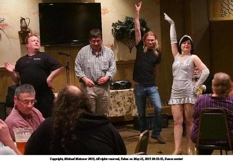 Picture #26: Dance contest #6 Small: 900x623, 110,398 bytes (108K), (html file) Large: 4500x3000, 9,026,499 bytes (8.6M), (html file) Copyright, Michael Meissner 2015, All rights reserved Olympus E-M5-I camera with Panasonic 20mm lens f/1.8, ISO 3200, 1/60 sec, 20.0mm, auto mode, vivid color, matrix metering, digital zoom x2, IS1 (All Direction Shake IS), noise filter low 35mm equivalent focal length 80.0mm, digital zoom x2 Programs used: crop, gimp, raw therapee Taken by Michael Meissner on May 21, 2015 20:52:53 Last modified on June 12, 2015 at 22:53 |
