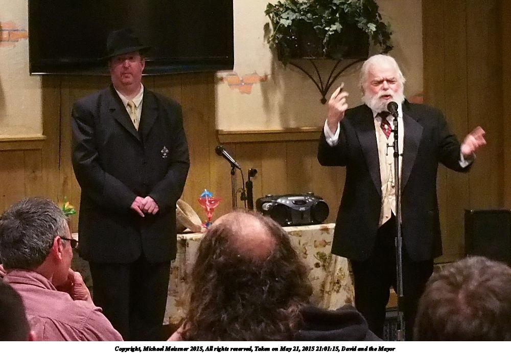 Picture #29: David and the Mayor #4 Small: 1000x690, 116,297 bytes (114K), (html file) Large: 3000x2000, 4,362,892 bytes (4.2M), (html file) Copyright, Michael Meissner 2015, All rights reserved Olympus E-M5-I camera with Panasonic 20mm lens f/1.7, ISO 3200, 1/50 sec, 20.0mm, auto mode, vivid color, matrix metering, digital zoom x2, IS1 (All Direction Shake IS), noise filter low 35mm equivalent focal length 80.0mm, digital zoom x2 Programs used: crop, gimp, raw therapee Taken by Michael Meissner on May 21, 2015 21:01:15 Last modified on June 12, 2015 at 22:57 |