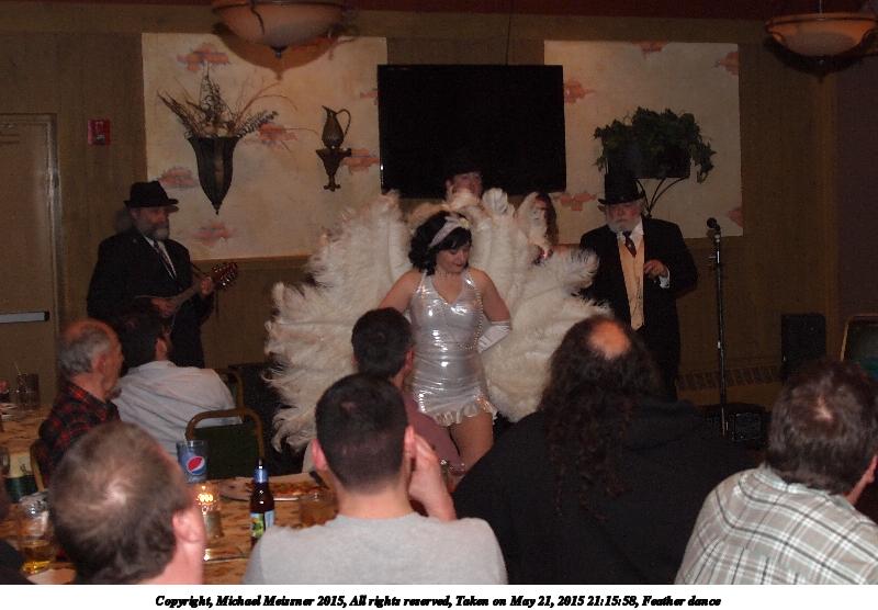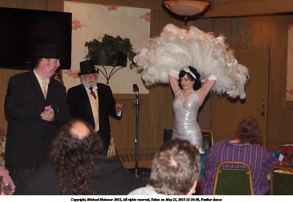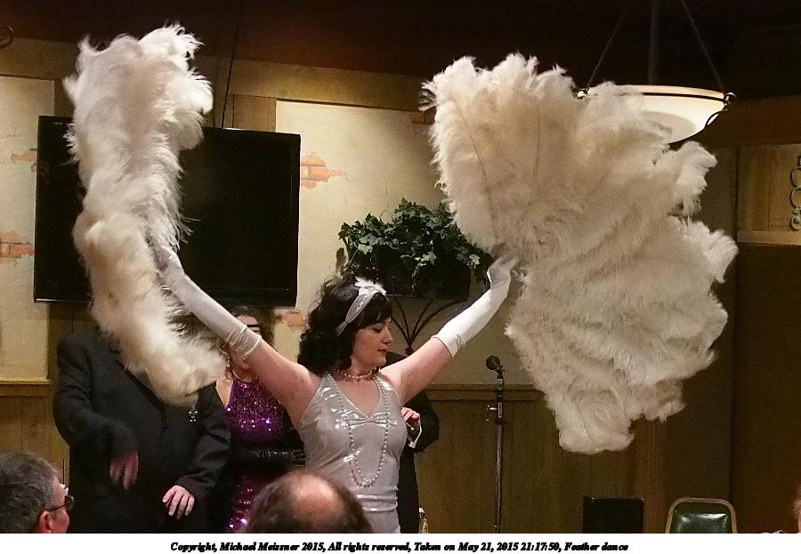 Picture #42: Feather dance #6 Small: 900x623, 97,541 bytes (96K), (html file) Large: 3600x2400, 5,820,416 bytes (5.6M), (html file) Copyright, Michael Meissner 2015, All rights reserved Olympus E-M5-I camera with Panasonic 20mm lens f/1.8, ISO 3200, 1/60 sec, 20.0mm, auto mode, vivid color, matrix metering, digital zoom x2, IS1 (All Direction Shake IS), noise filter low 35mm equivalent focal length 80.0mm, digital zoom x2 Programs used: crop, gimp, raw therapee Taken by Michael Meissner on May 21, 2015 21:17:50 Last modified on June 12, 2015 at 23:15 |
