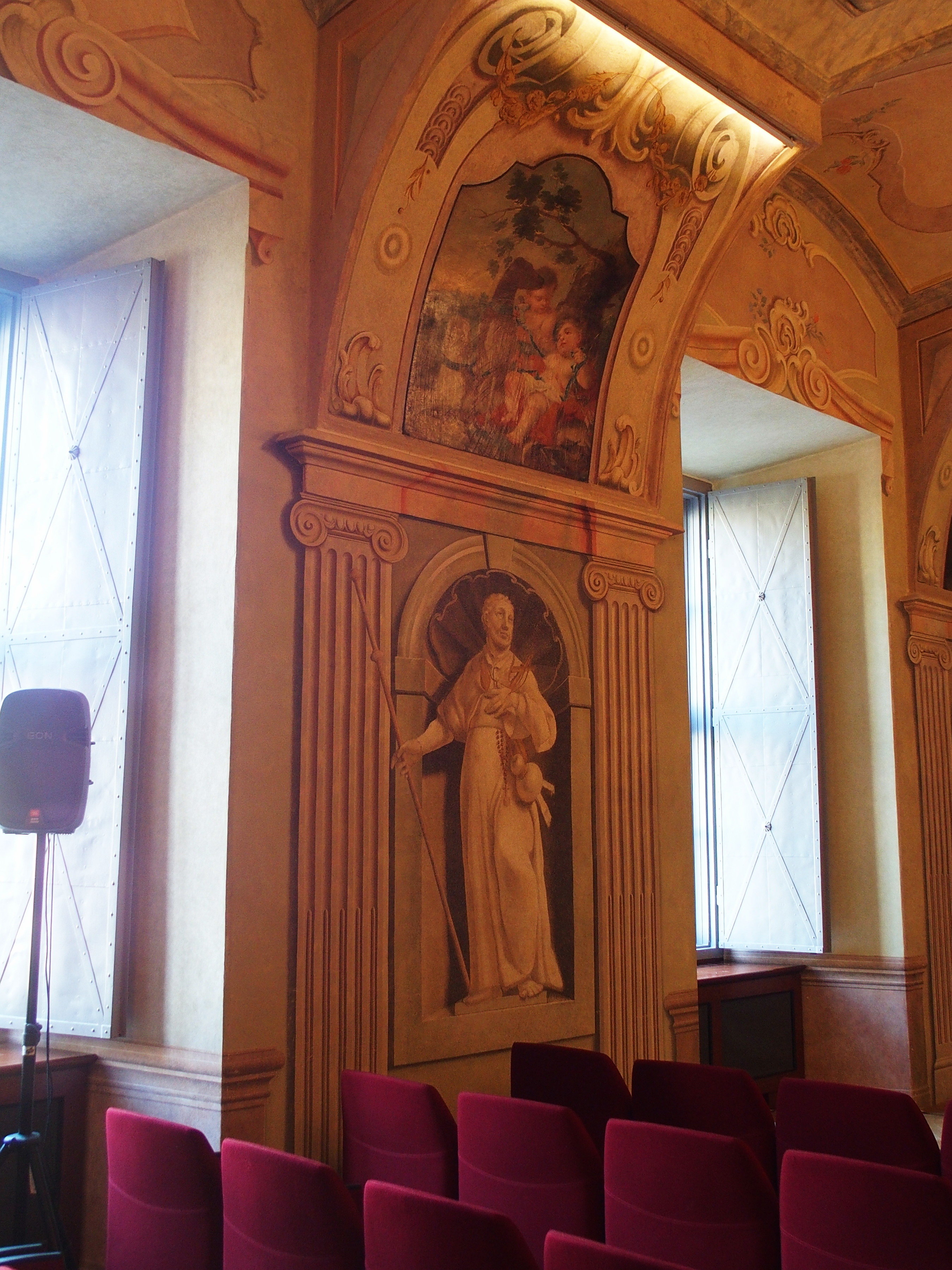 Picture #42: Charles university murals #6 Thumb: 450x338, 49,473 bytes (49K) Small: 900x698, 133,738 bytes (131K), (html file) Large: 3600x2700, 2,774,510 bytes (2.6M), (html file) Olympus Stylus-1 camera f/2.8, ISO 800, 1/50 sec, 9.8mm, auto mode, vivid color, SHQ, matrix metering, IS Auto, noise reduction auto, noise filter low 35mm equivalent focal length 46.0mm Programs used: crop, raw therapee Taken by Michael Meissner on August 09, 2015 10:39:19 Last modified on September 05, 2015 at 17:28 |