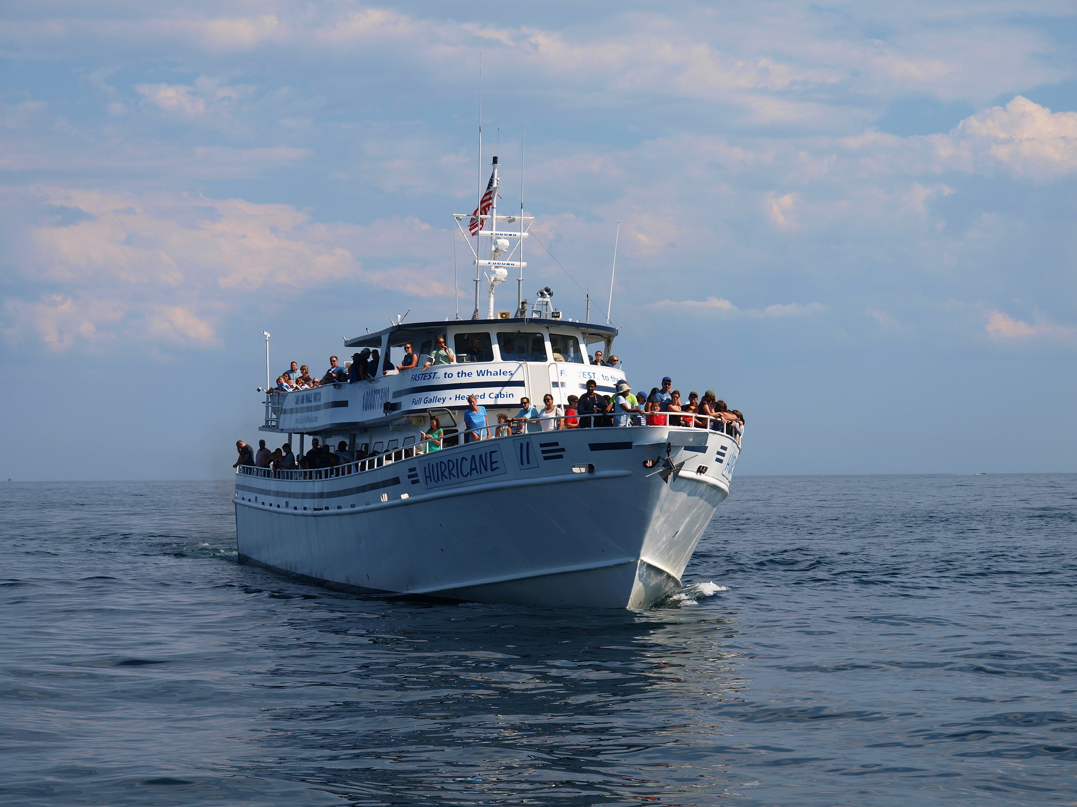 Picture #40: Hurricane II whale watch boat #2 Small: 900x698, 103,931 bytes (102K), (html file) Large: 3600x2700, 2,151,622 bytes (2.1M), (html file) Copyright, Michael Meissner 2015, All rights reserved Olympus E-3 camera with Olympus 14-54mm f/2.8-3.5 lens f/7.1, ISO 100, 1/500 sec, 49.0mm, auto mode, vivid color, matrix metering, IS1 (All Direction Shake IS), noise filter low 35mm equivalent focal length 98.0mm Programs used: crop, raw therapee Taken by Michael Meissner on August 01, 2015 14:43:08 Last modified on September 05, 2015 at 15:25 |