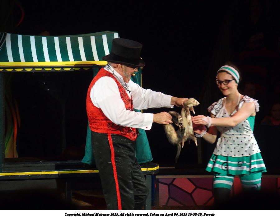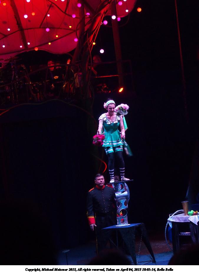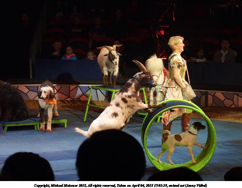 Picture #44: animal act (Jenny Vidbel) #5 800x823, 118,102 bytes (116K), (html file) Copyright, Michael Meissner 2015, All rights reserved Olympus Stylus-1 camera f/2.8, ISO 1600, 1/50 sec, 42.5mm, auto mode, vivid color, spot metering, IS Auto, noise reduction auto, noise filter low 35mm equivalent focal length 200.0mm Programs used: crop, gimp, raw therapee Taken by Michael Meissner on April 04, 2015 17:03:43 Last modified on April 12, 2015 at 20:28 |