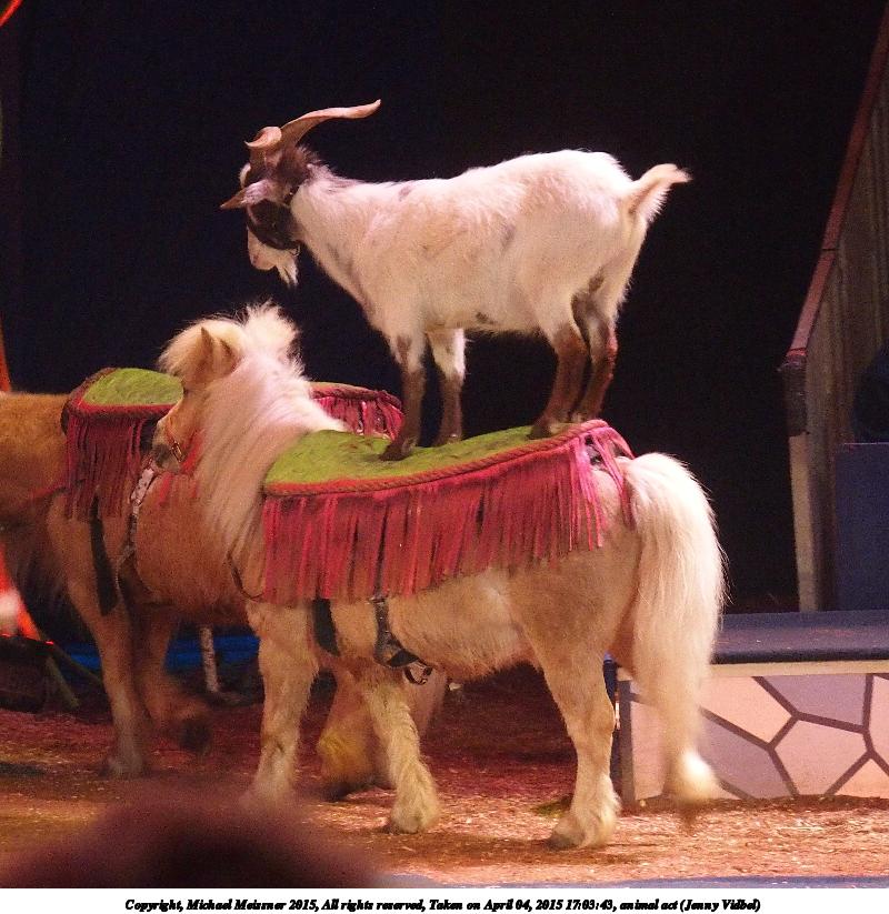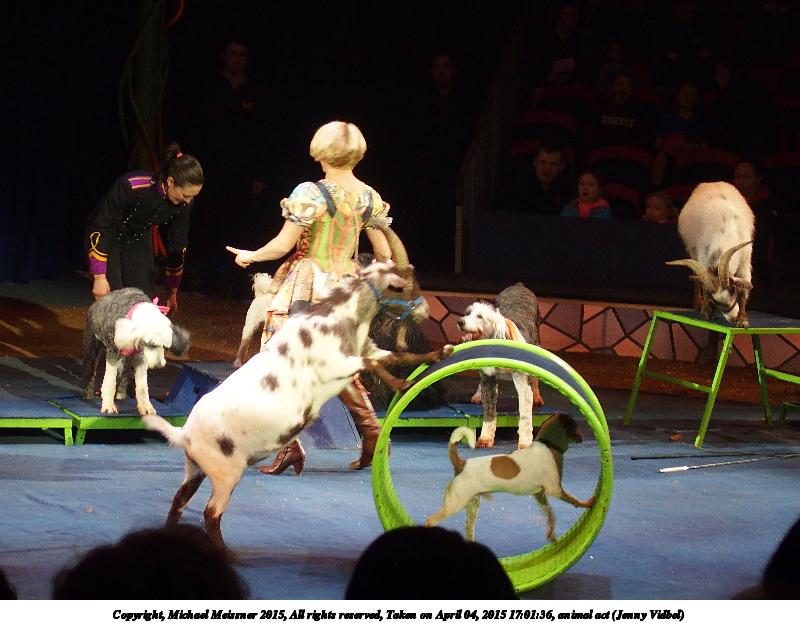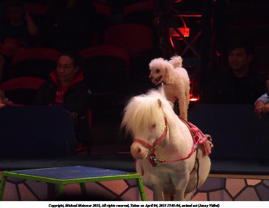Picture #45: animal act (Jenny Vidbel) #4 900x698, 69,496 bytes (68K), (html file) Copyright, Michael Meissner 2015, All rights reserved Olympus Stylus-1 camera f/2.8, ISO 800, 1/100 sec, 64.3mm, auto mode, vivid color, spot metering, IS Auto, noise reduction auto, noise filter low 35mm equivalent focal length 300.0mm Programs used: crop, raw therapee Taken by Michael Meissner on April 04, 2015 17:03:04 Last modified on April 12, 2015 at 20:27 |