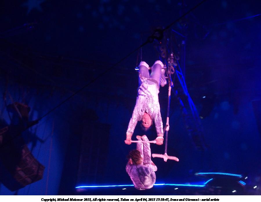 Picture #36: Irene and Giovanni - aerial artists 800x623, 50,232 bytes (50K), (html file) Copyright, Michael Meissner 2015, All rights reserved Olympus Stylus-1 camera f/2.8, ISO 800, 1/40 sec, 21.2mm, auto mode, vivid color, spot metering, IS Auto, noise reduction auto, noise filter low 35mm equivalent focal length 100.0mm Programs used: crop, gimp, raw therapee Taken by Michael Meissner on April 04, 2015 17:16:28 Last modified on April 22, 2015 at 23:49 |